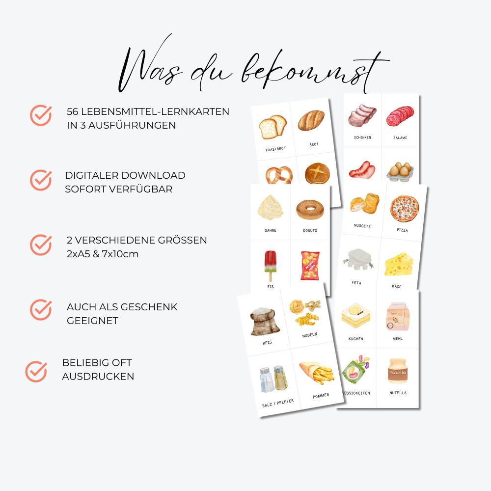 Lebensmittel Lernkarten für Kinder, Einkaufskarten im Montessori Stil, Lebensmittel Flash Cards zum Ausdrucken