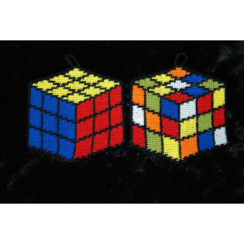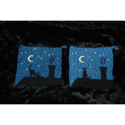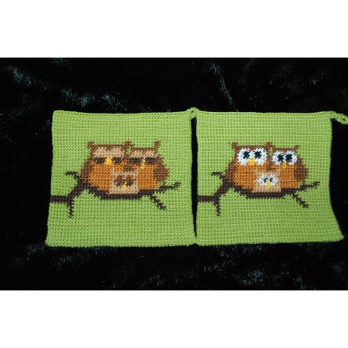 Das besondere an diesen Topflappen ist, dass man zwei komplett unterschiedliche Seiten für einen Topflappen gestalten kann. Durch die Technik werden die Topflappen auch schön dick und somit hervorragend isolierend. Gleichzeitig spart man sich – bis auf den Abschluss - das Vernähen der Fäden, da diese direkt in den Topflappen eingearbeitet werden.