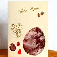 Liebevoll handgefertigte Doppelkarte mit gleichfarbigem Briefumschlag. Mit Oster - Stickern sowie Os...