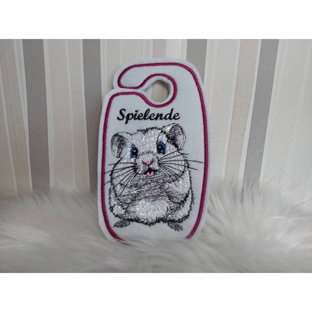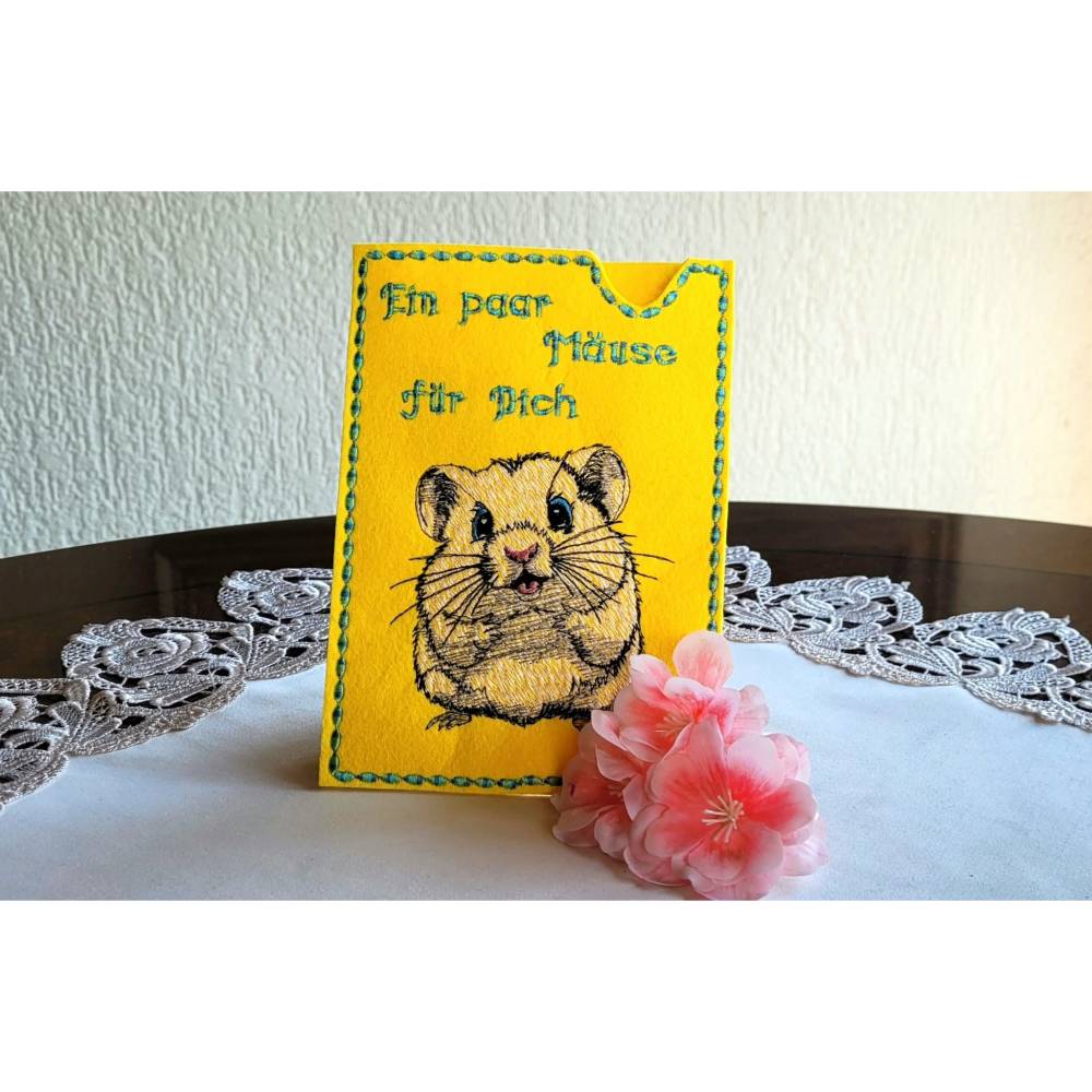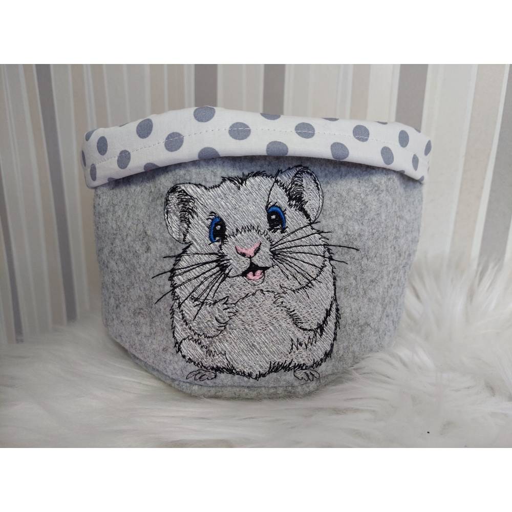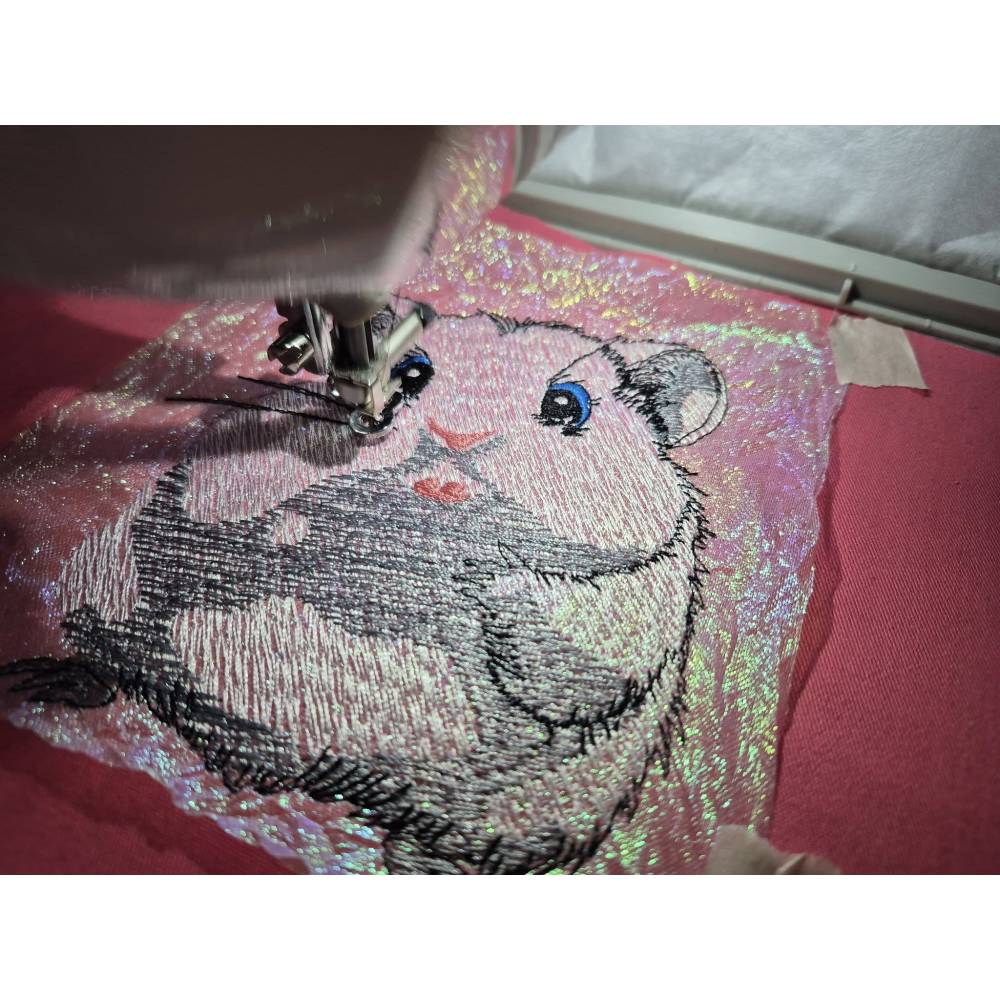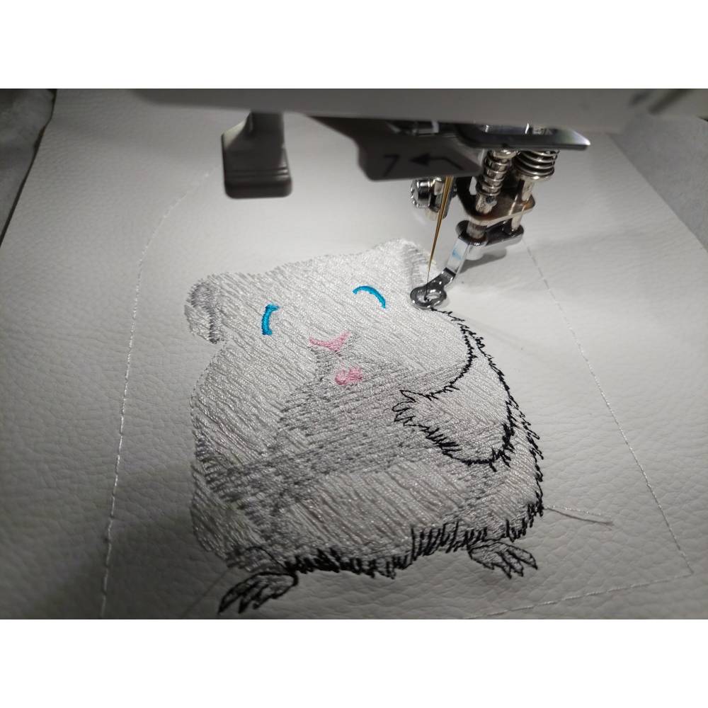 Der kleine Nager kommt besonders auf hellen Textilien gut zur Geltung.