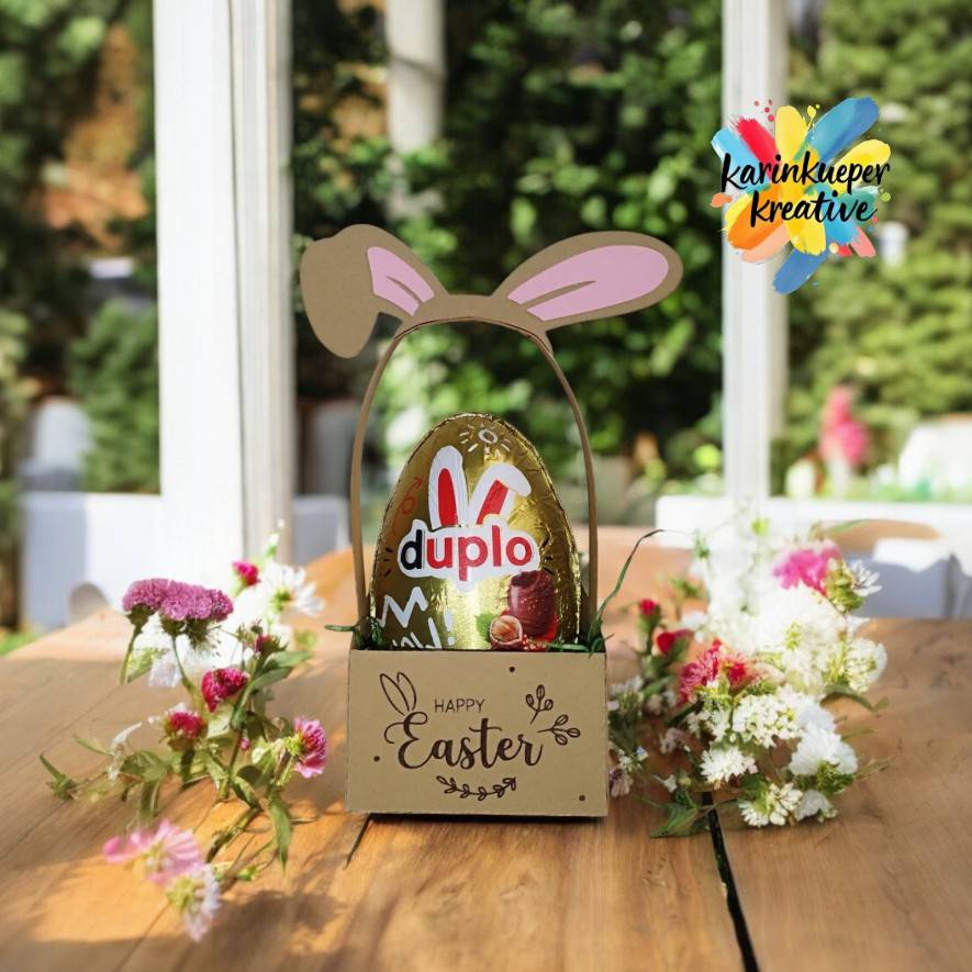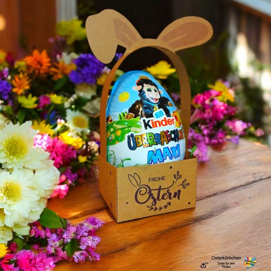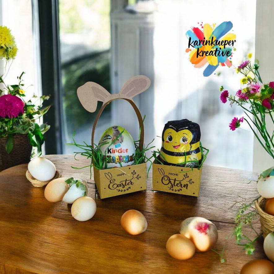 Plotterdatei Osterkörbchen in drei Größen und Schriftzug - dieperfekte DIY-Idee! Mit dieser liebevoll gestalteten Plotterdatei erstellst du wunderschöne Osterkörbchen in drei verschiedenen Größen – passend für verschiedene Schokoladen Eier – plus Schriftzug in Deutsch und Englisch. Die Datei ist für Plotter optimiert und auch als PDF erhältlich, falls du keinen Plotter besitzt. Die vielseitigen Elemente kannst du auch für andere Bastelprojekte verwenden.