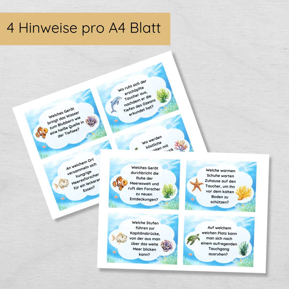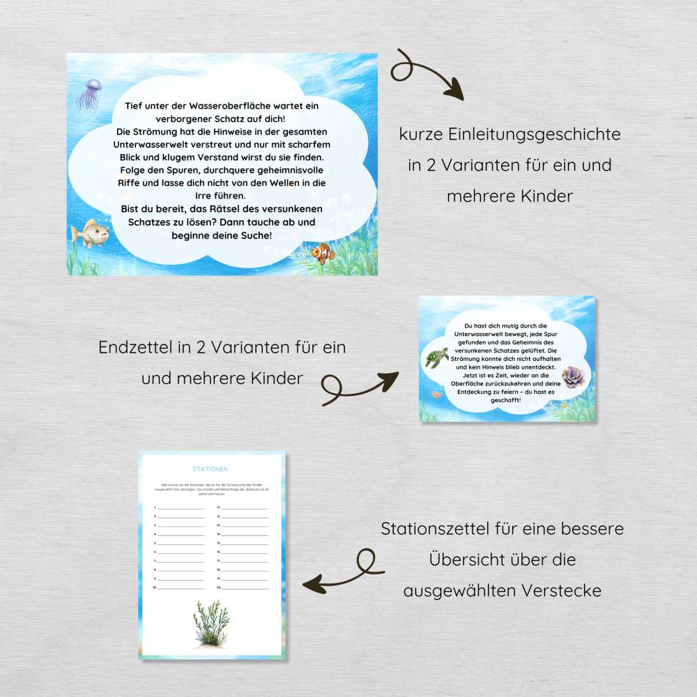 Unterwasser Indoor Schnitzeljagd mit 20 Hinweisen für Zuhause, Urkunde, Geschichte & mehr, Schatzsuche für Kinder ab 6