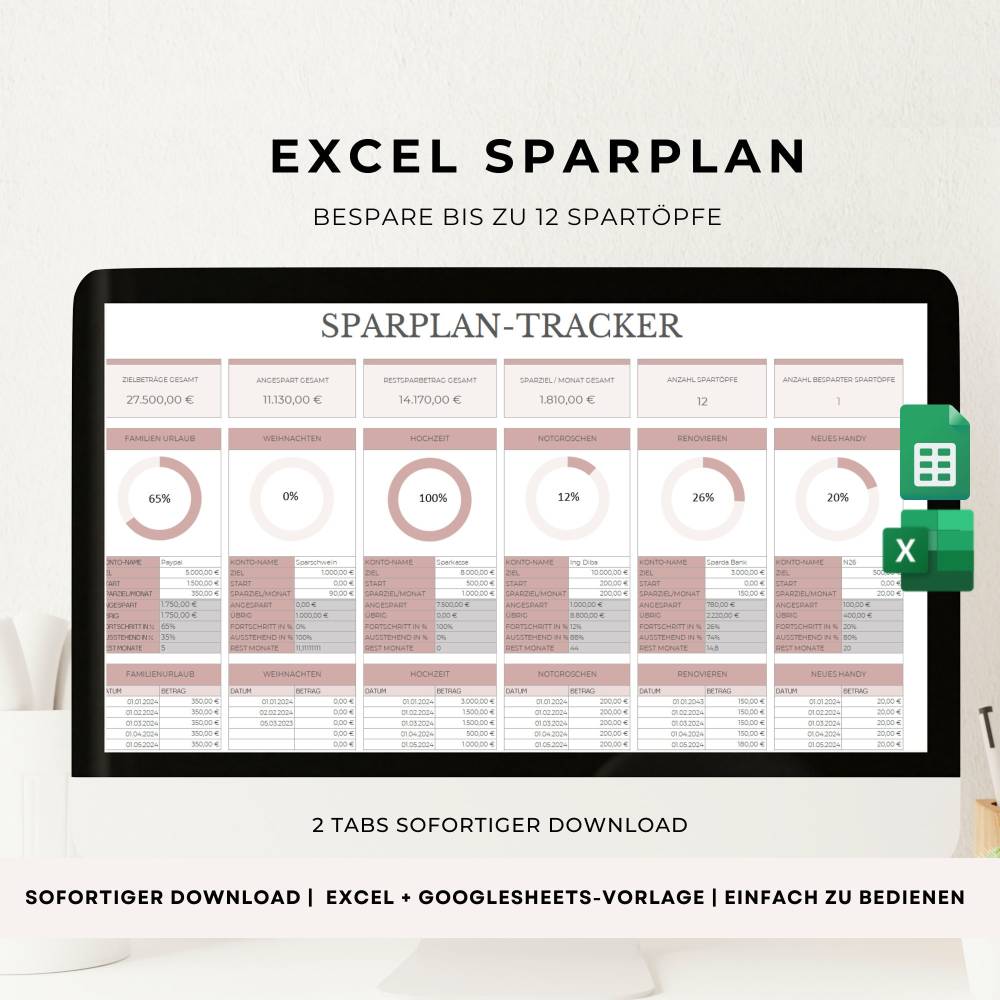 Excel Sparplan, Google Sheets Sparvorlage, Excel-Tabelle für Finanzen