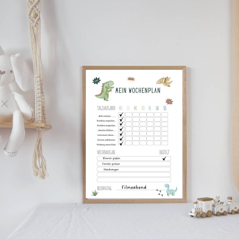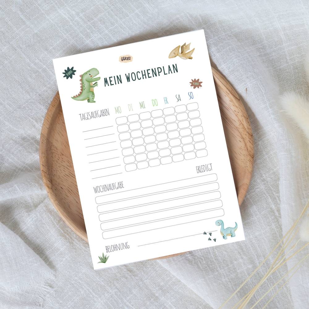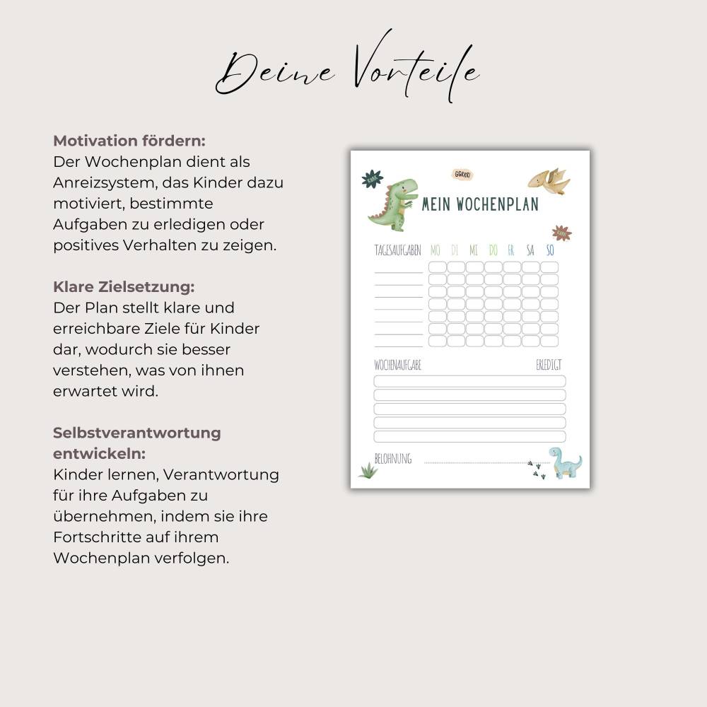 Wochenplan für Kinder/Schulkinder auf Deutsch A4 Format. Wochenplan Dino als Digitaler PDF Download