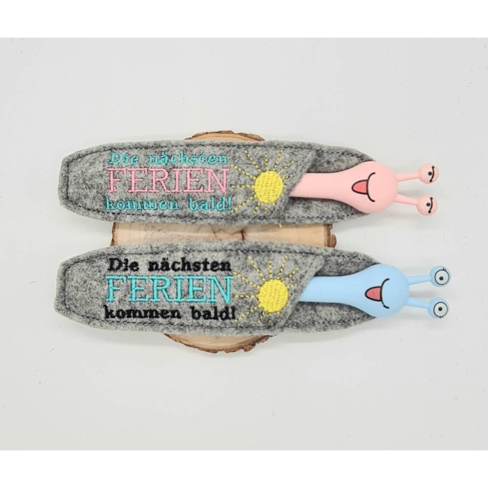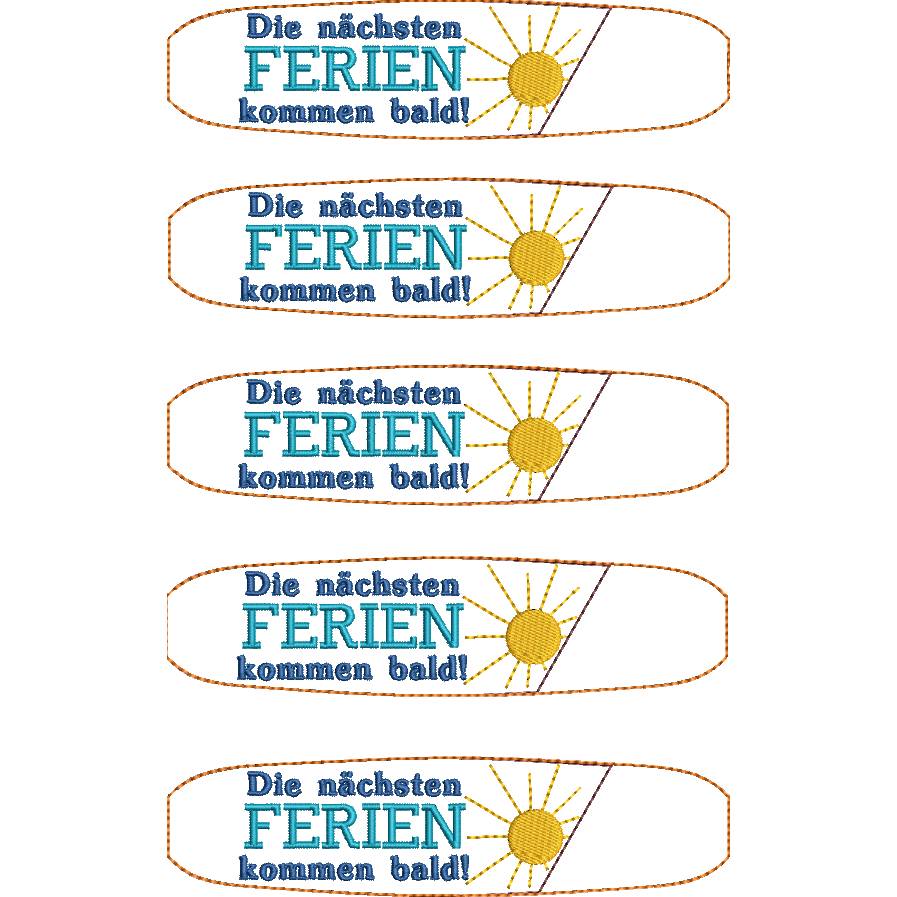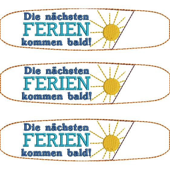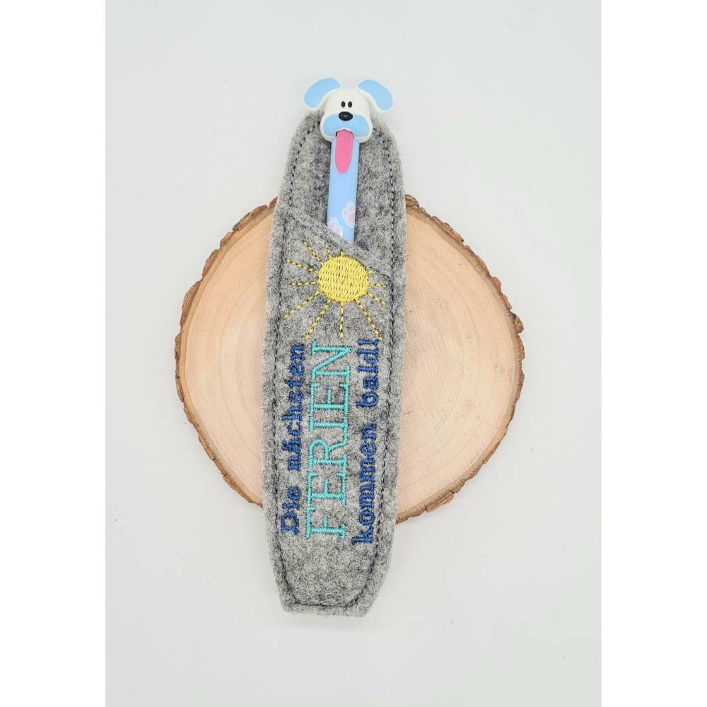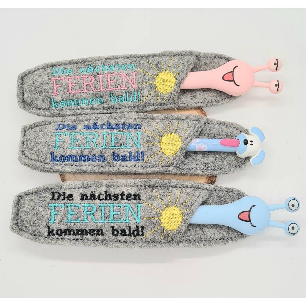 Die ITH Stickdatei für Kulli-Etuis bringt den Spruch „Die nächsten Ferien kommen bald...!“ direkt auf die Stifthülle und ist die perfekte Geschenkidee für alle, die schon vom nächsten Urlaub träumen.