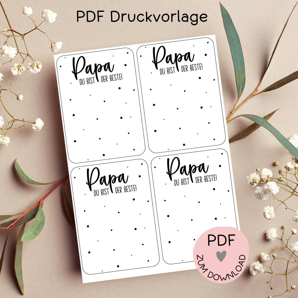Karten "Papa", Digitale Datei, PDF-Druckvorlage, zum ausdrucken u. ausschneiden, z.B. f. kleine Geschenke z. Vatertag