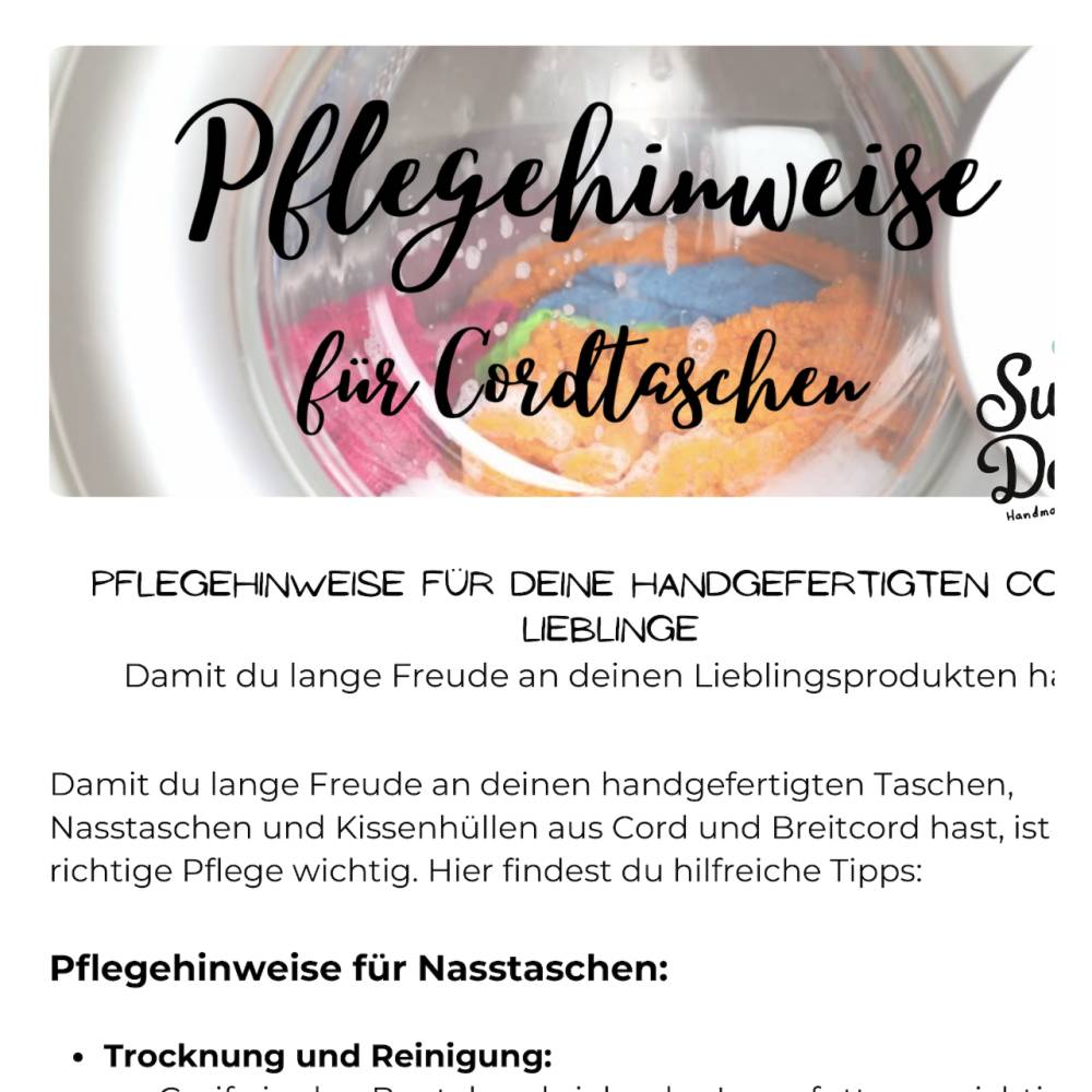 Erhalte jetzt deine kostenlose Pflegeanleitung für SuGar Design – handgefertigte Taschen aus Cord und Breitcord!