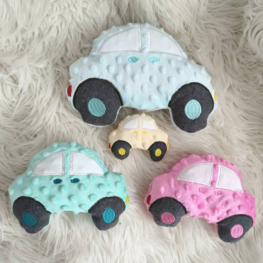 Stickdatei Auto Kuschelkissen In the Hoop – gestalte individuelle Geschenke mit dieser liebevoll erstellten Stickdatei! Du erhältst ein umfangreiches Set mit 5 Größen: