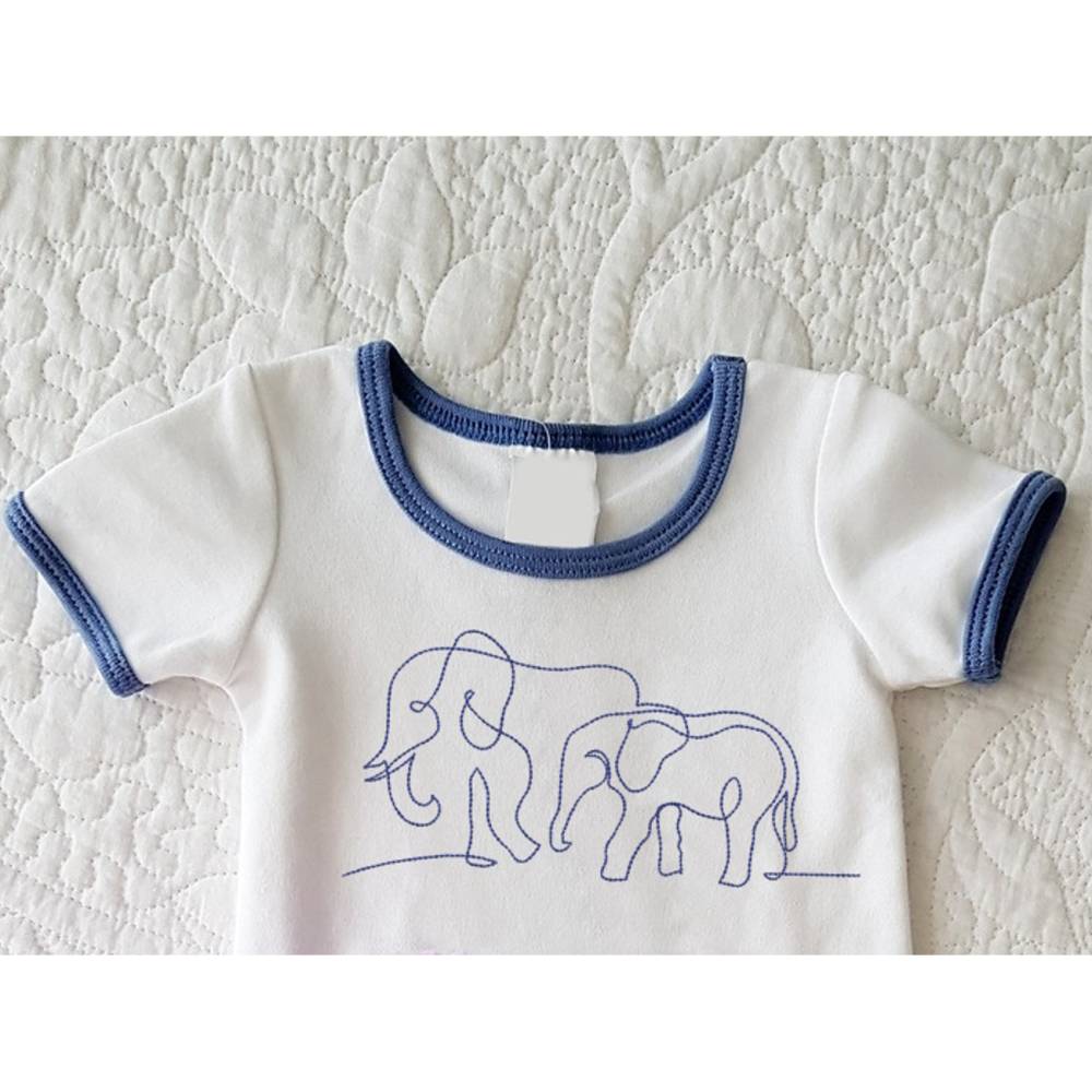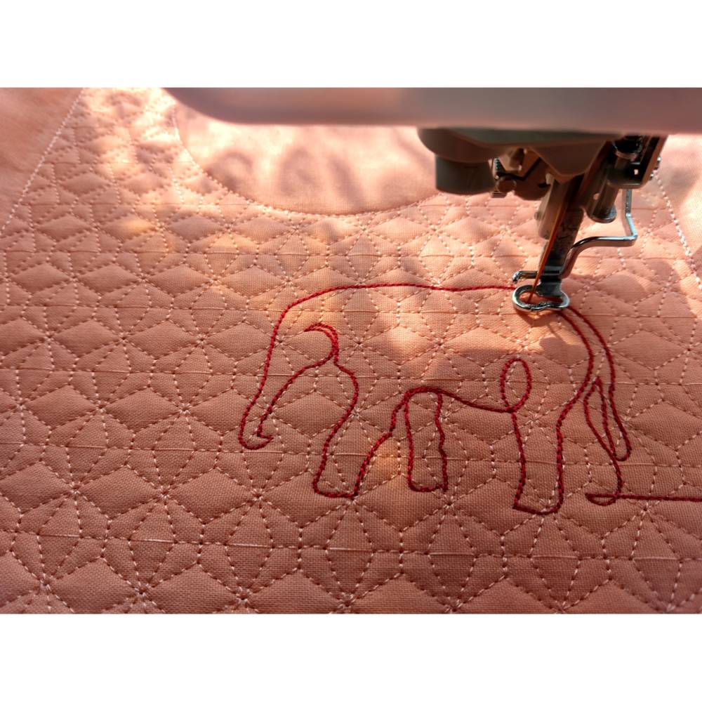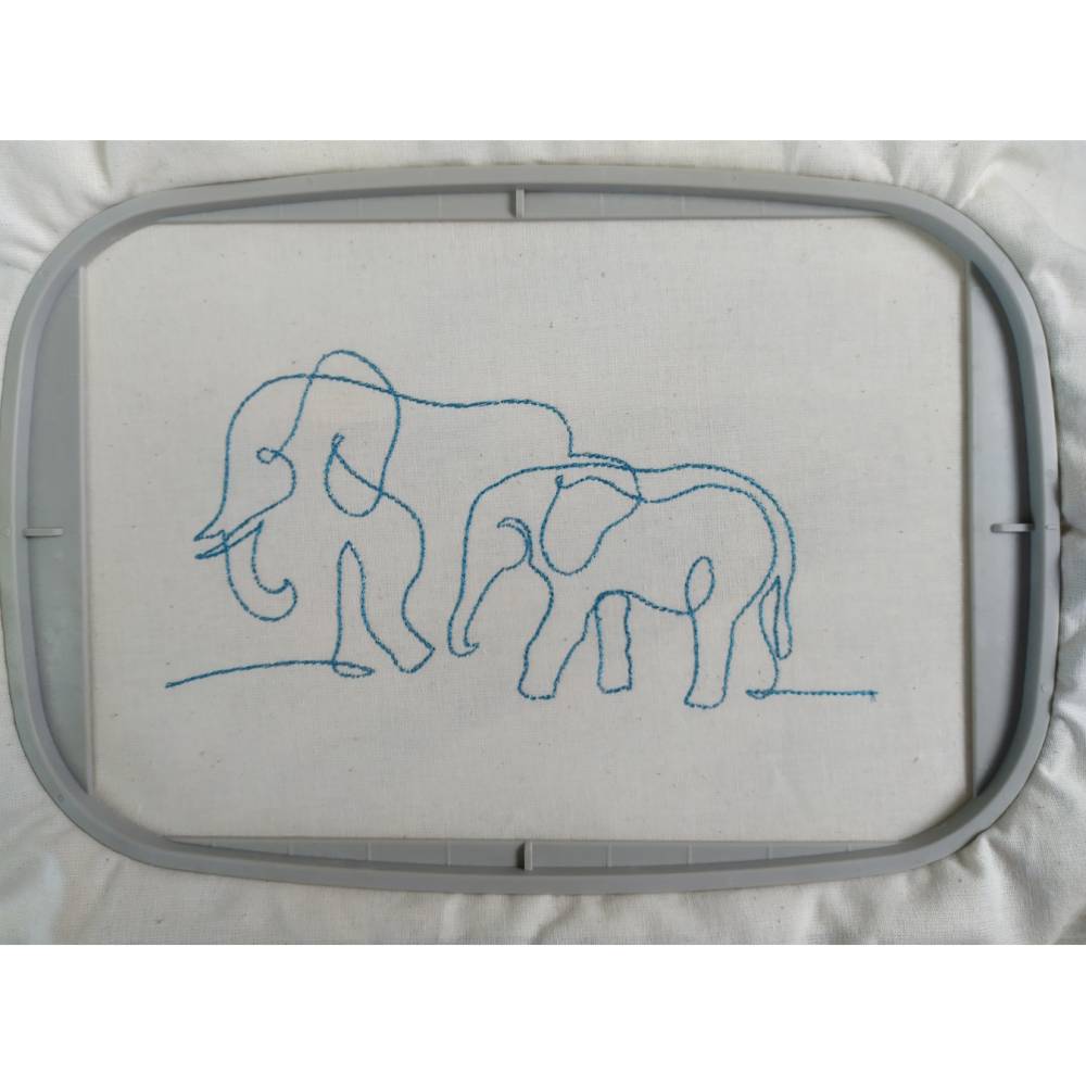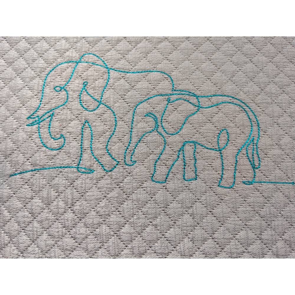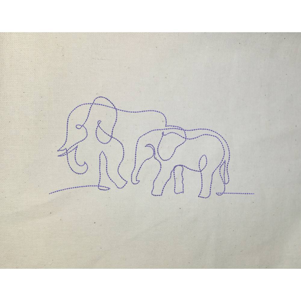 Eine Elefantenmutter mit ihrem Baby in einer Linie im Laufstich gelegt. Gestickt auf dunklen oder hellen Textilien kann diese Datei mit kontrastreichem Garn punkten und kann gut mit anderen Mustern, Sprüchen oder ITH kombiniert werden. Das Muster hat keine Sprungfäden, da es in einer Linie digitalisiert ist und lässt sich einfach in einem Arbeitsschritt sticken, sollte aber gut eingespannt und stabilisiert werden. Dann ist es auch Anfängertauglich.