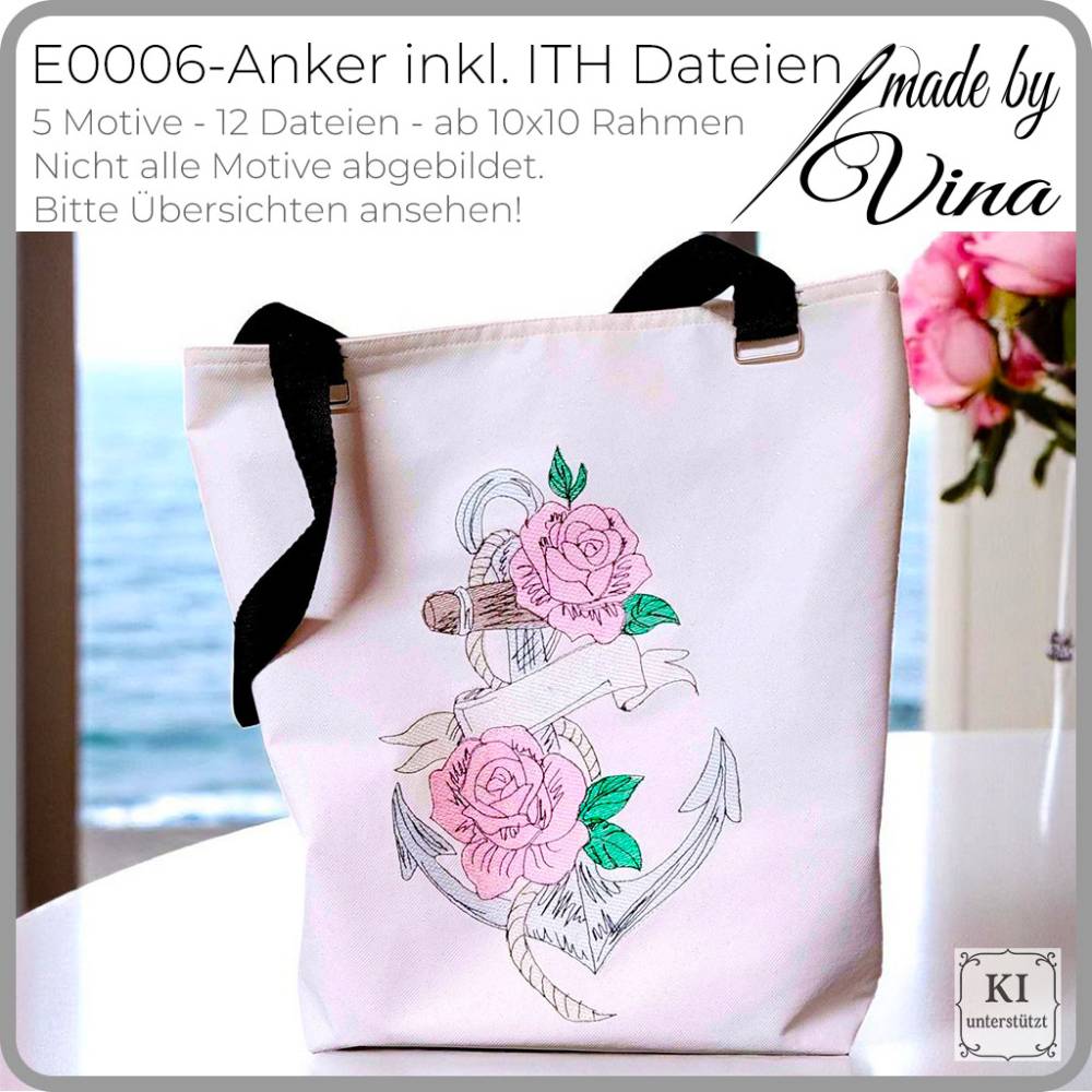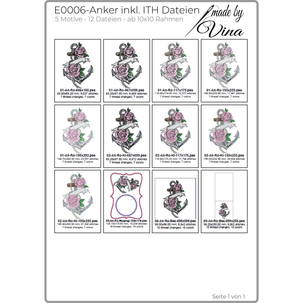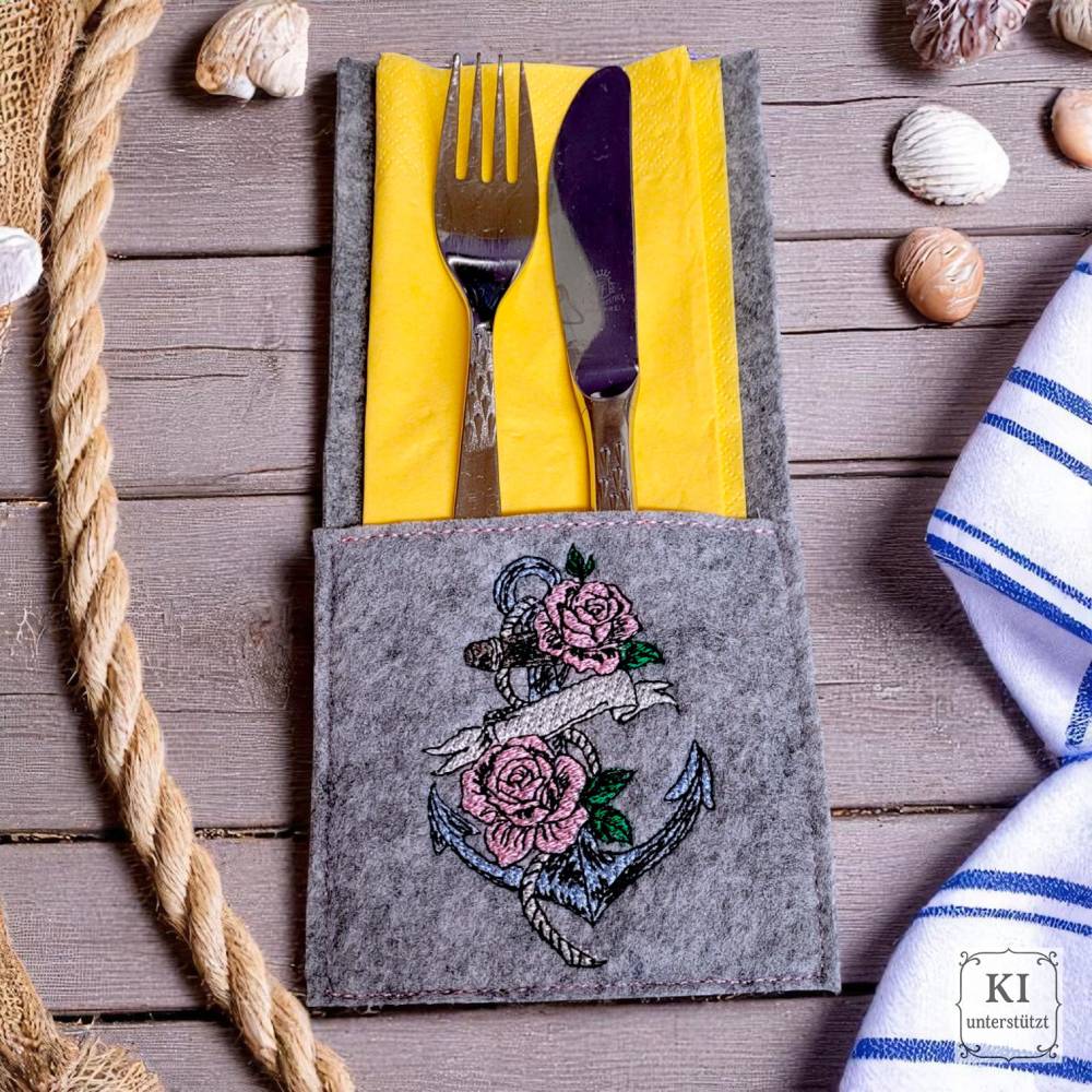 Stickdateien Set „Anker inkl. ITH Dateien“ – entdecke das maritime Einzelmotiv mit filigraner Rosenverzierung, perfekt für deine kreativen Nähprojekte! Das beliebte Anker-Design bekommst du jetzt erstmals als Einzelversion – inklusive ITH-Bestecktasche und passendem MugRug. Diese Stickdateien sind ideal für maritime Wohndeko, festliche Tischdekorationen oder ganz persönliche Geschenkideen mit Symbolkraft.