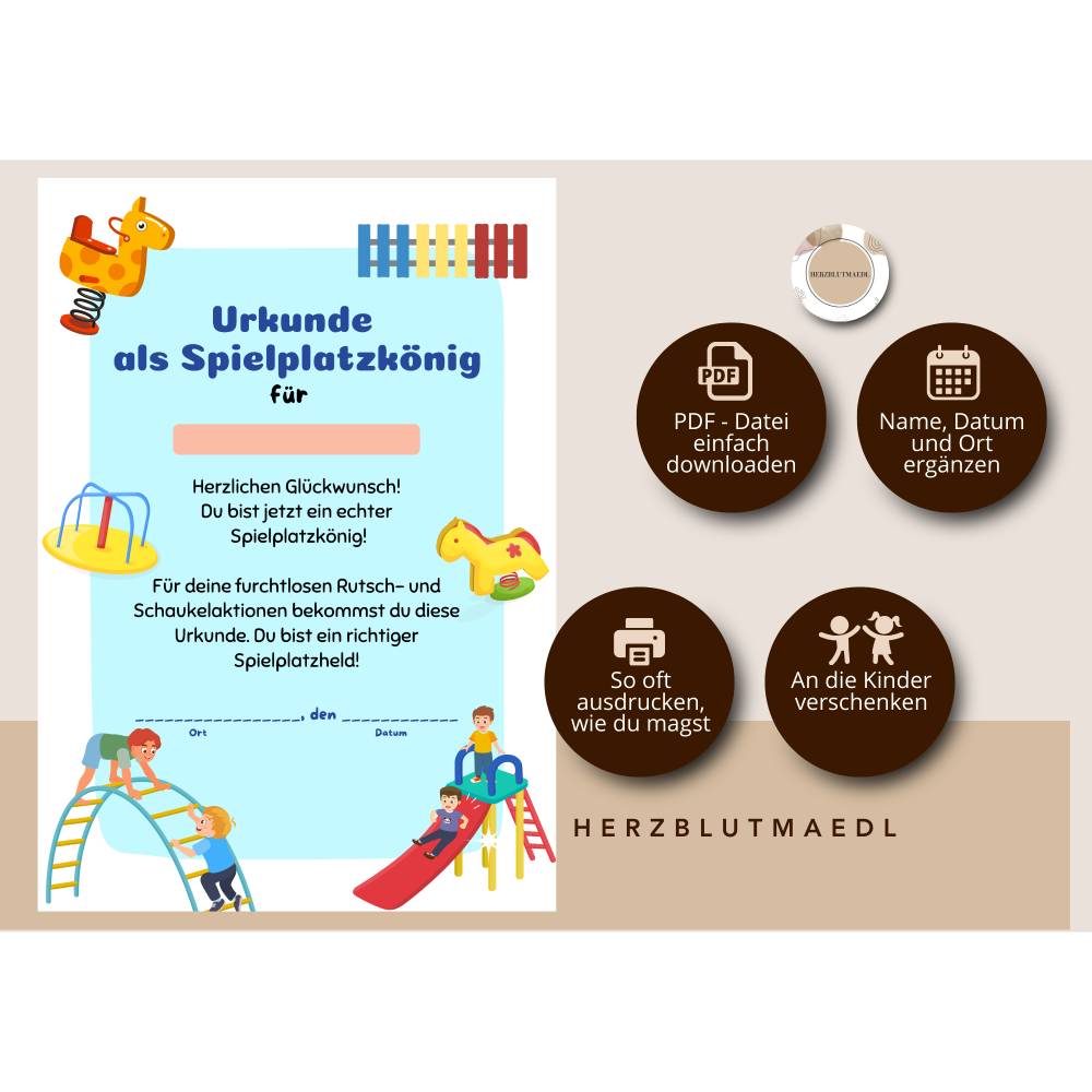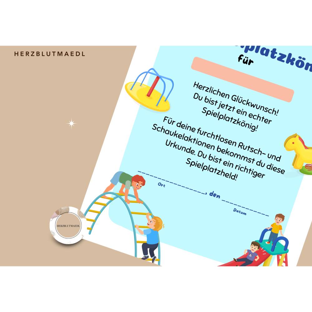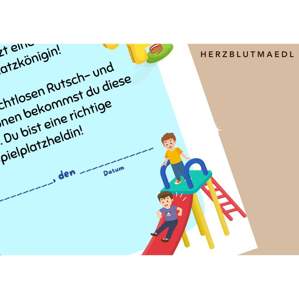 Spielplatz-Urkunden zum Ausdrucken | A4 PDF Vorlage – Belohnungen & Mitgebsel für Kindergeburtstage, Spielplatzbesuche,