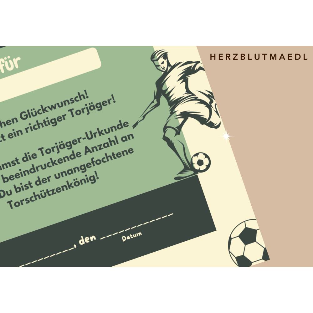 Du suchst nach einer besonderen Art, Erfolge und Momente festzuhalten? Unsere personalisierbaren Urkunden für Fußballturniere und Fußballpartys sind genau das Richtige für dich! Diese einzigartigen Zertifikate sind nicht nur ein tolles Andenken, sondern auch eine perfekte Möglichkeit, um deine Begeisterung für den Fußball zu zeigen. Ideal für Kinder und Erwachsene, ob für den kleinen Kicker im Garten oder das große Turnier mit Freunden. Mit liebevollen Designs und deiner ganz persönlichen Note machst du jede Feier unvergesslich.