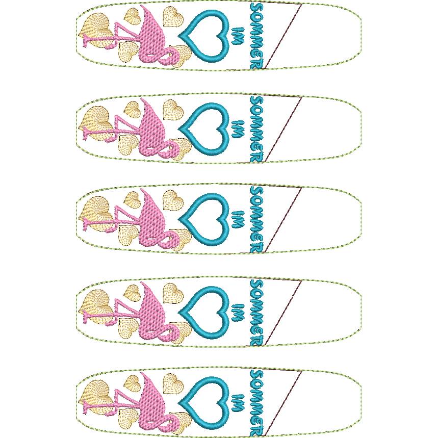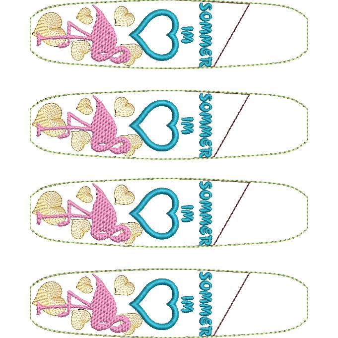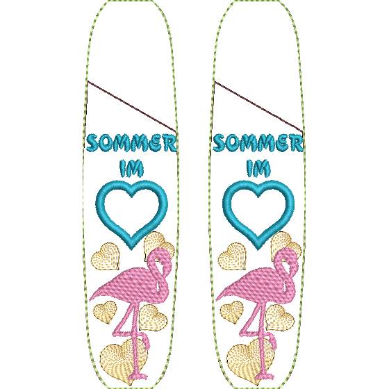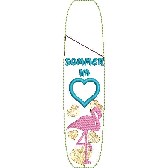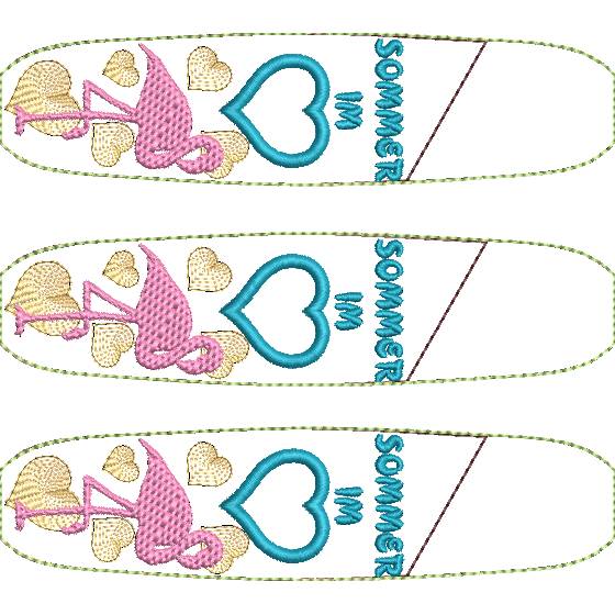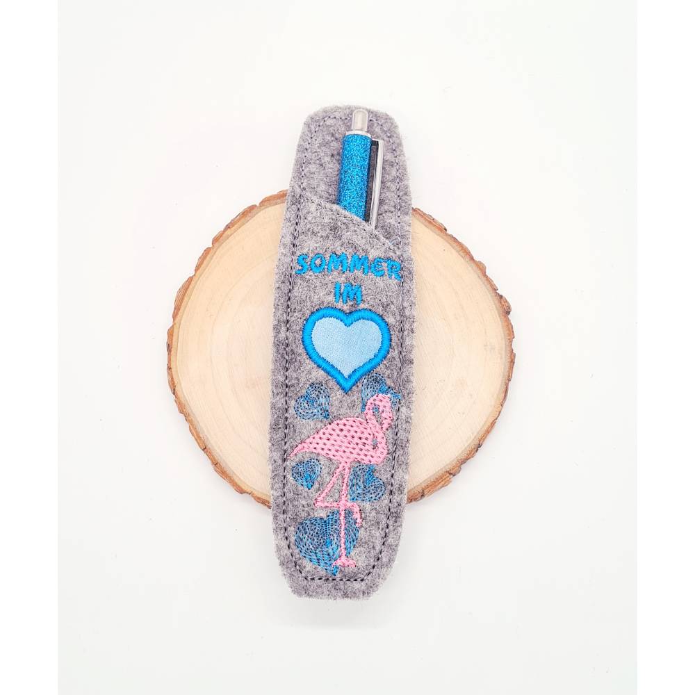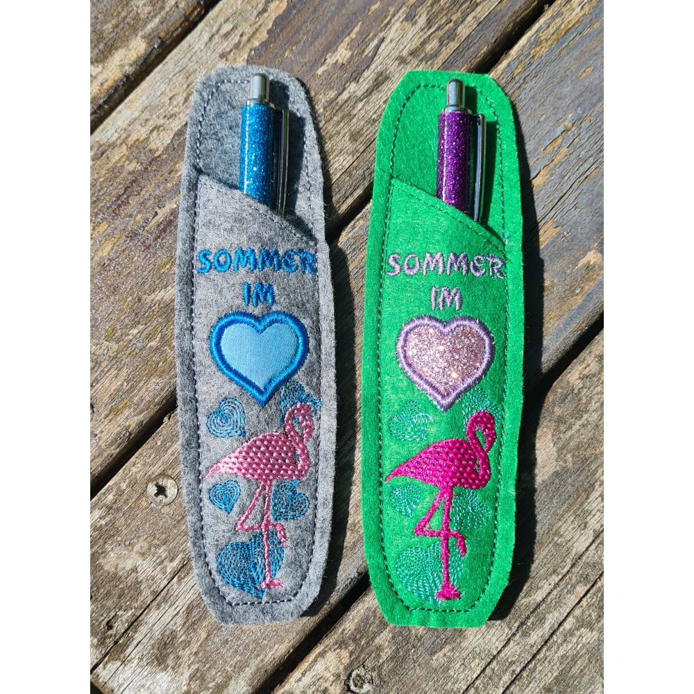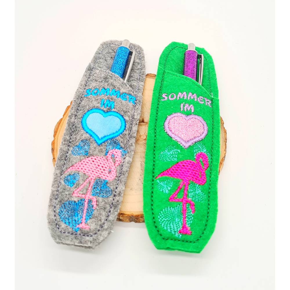 Stickdatei für Kulli Etui Sommer ITH – Die perfekte ITH Stickdatei für sommerliche Kugelschreiber-Hüllen mit Herz und Flamingo-Motiv!