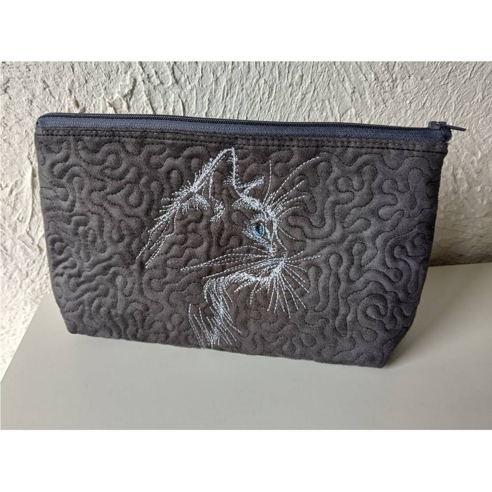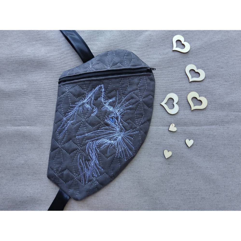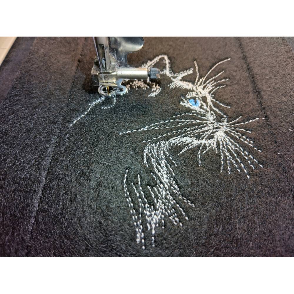 Wunderschönes Katzengesicht, seitlich in Konturen dargestellt und in Laufstich gelegt. Filigran ausgearbeitet mit wenigen Stichen, die aber effektvoll eingesetzt sind. Die Augeniris ist in Satinstich gelegt und wirkt recht natürlich. Muster sieht auch gespiegelt gut aus und ist recht anfängertauglich.