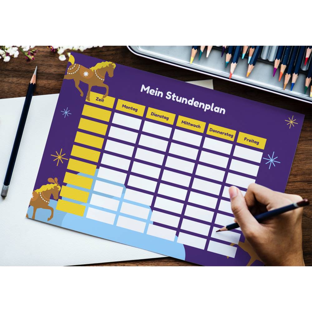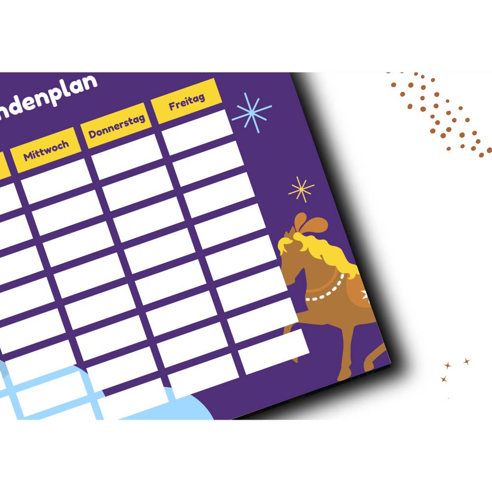 Entdecke unseren einzigartigen Pferde-Stundenplan als digitalen Download! Dieser liebevoll gestaltete Stundenplan bringt nicht nur Farbe in den Schulalltag, sondern hilft auch dabei, die Woche optimal zu organisieren.