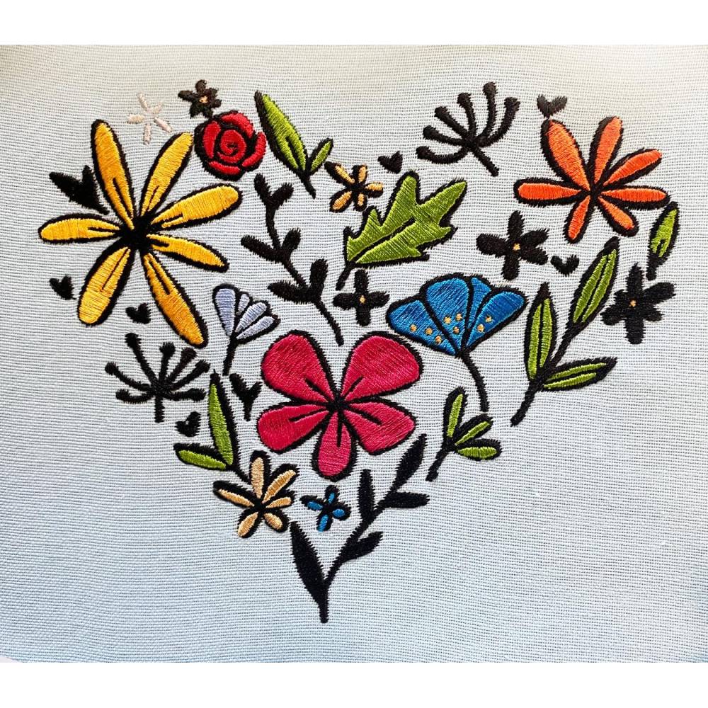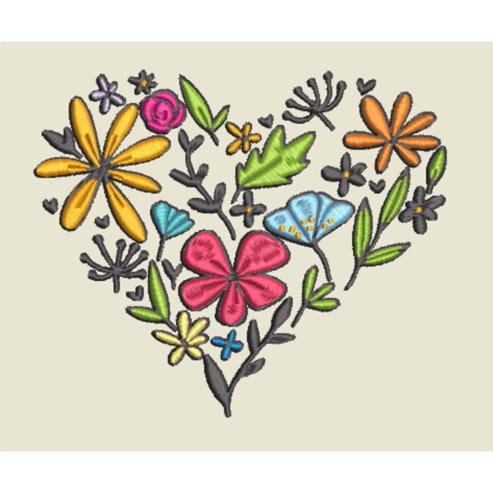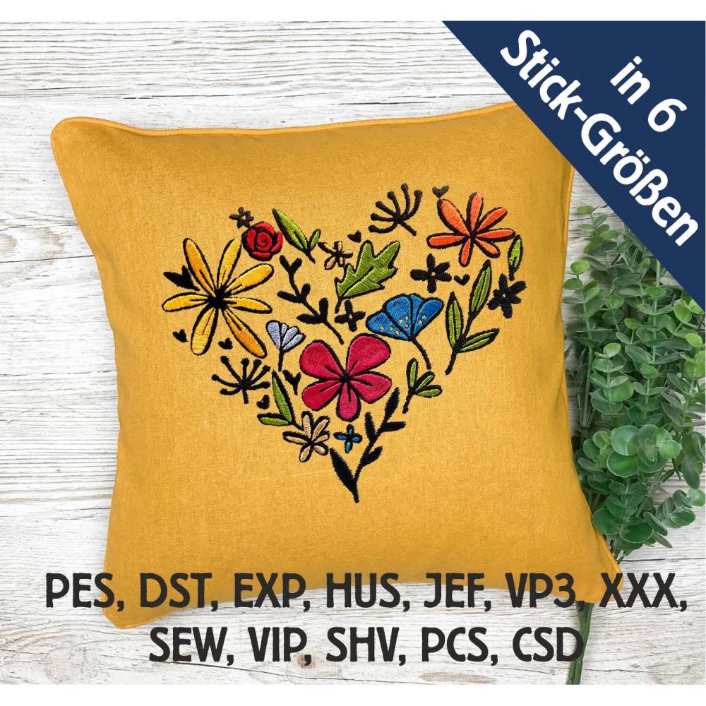 Stickdatei Blumenherz in 6 Größen, Maschinenstickerei, Stickmuster mit Blumen Motiv