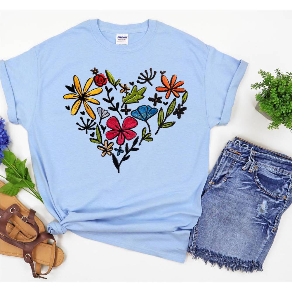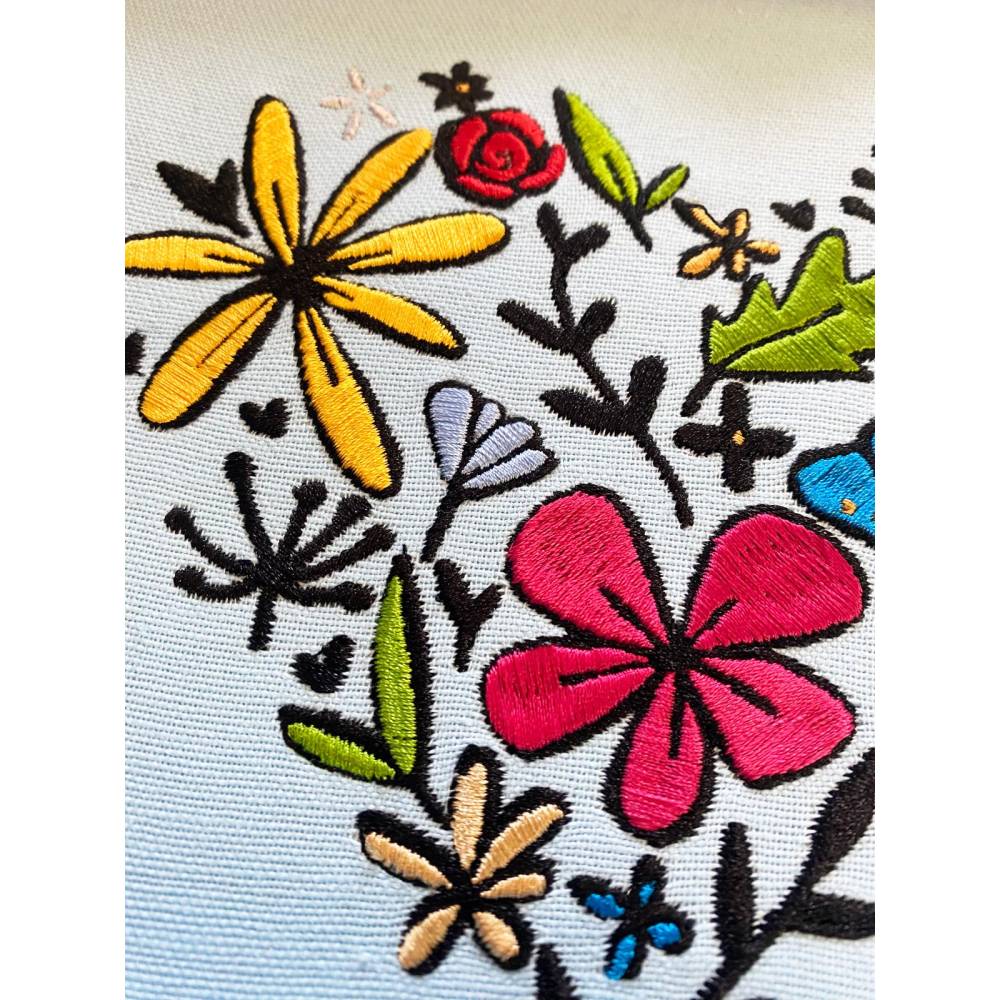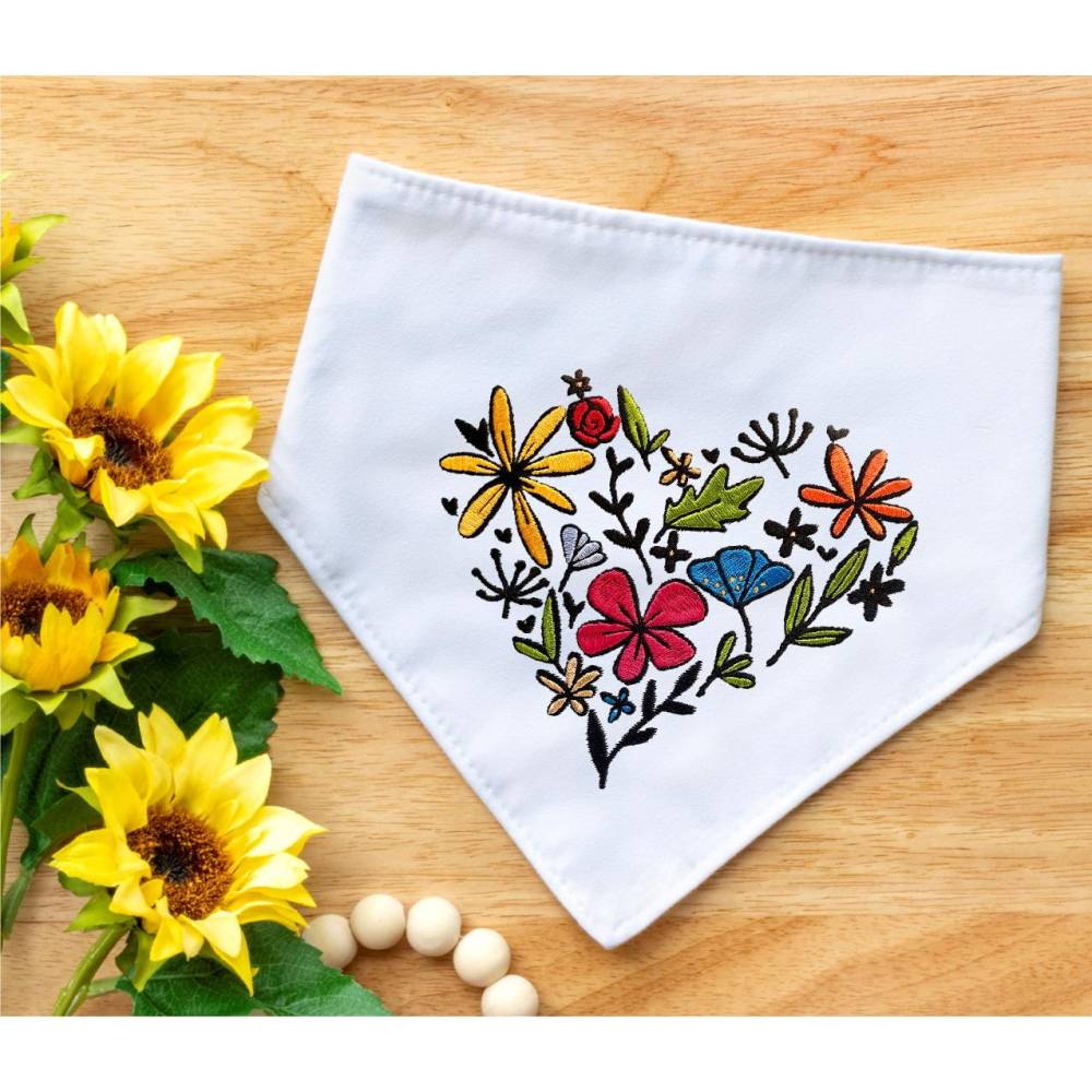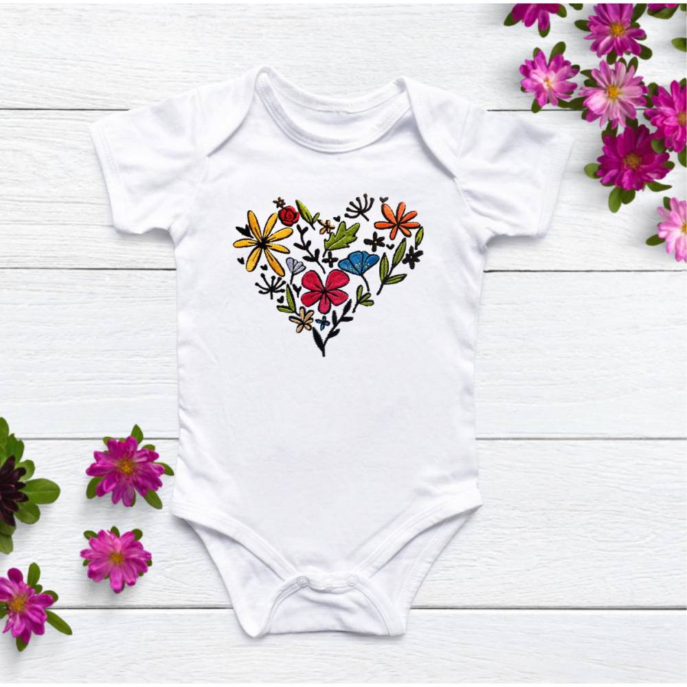 Stickdatei Blumenherz in 6 Größen, Maschinenstickerei, Stickmuster mit Blumen Motiv