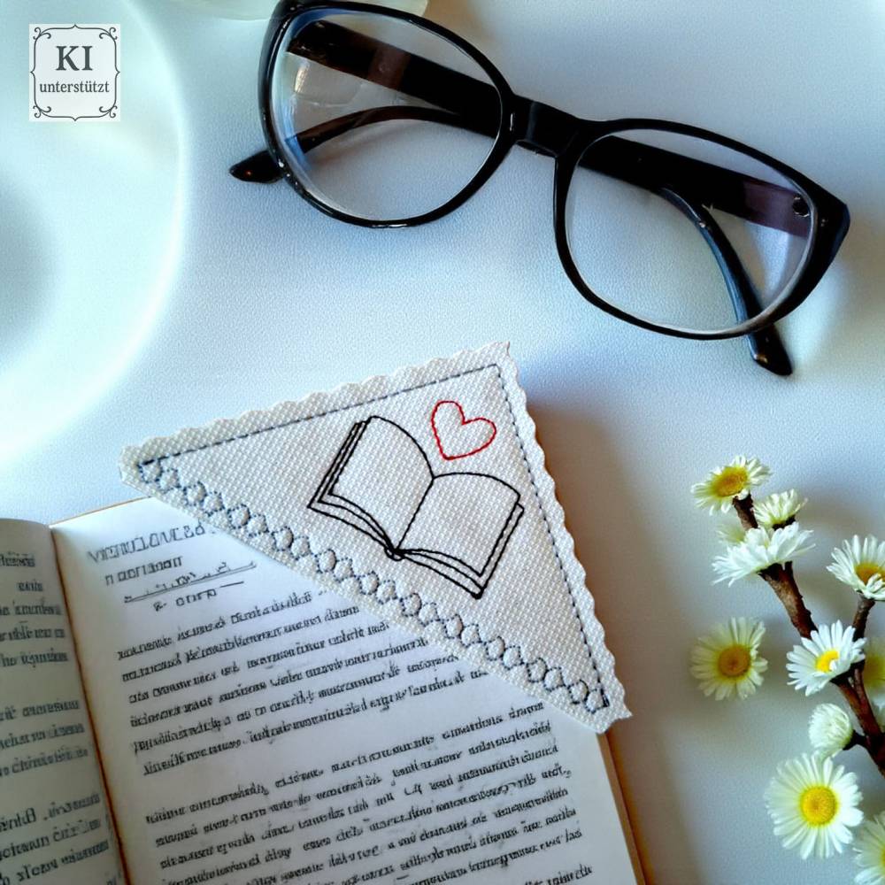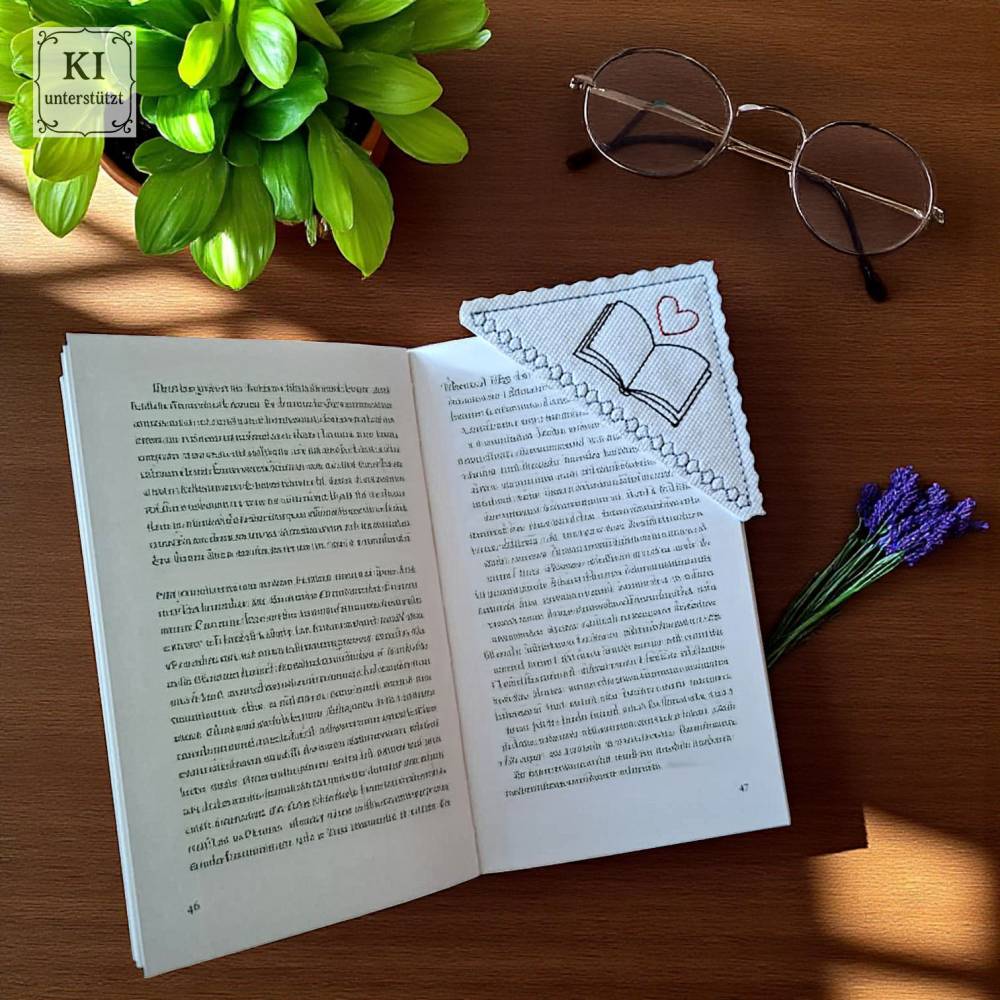 Mit dieser liebevoll gestalteten ITH-Leseecke mit Herz-Buch-Motiv verleihst du jedem Buch einen besonderen Charme. Das Motiv stammt aus dem beliebten Set 0032 – ITH Leseecken / Lesezeichen und eignet sich perfekt, wenn du ein kleines, schnelles Stickprojekt suchst oder das Sticken von ITH-Dateien testen möchtest.