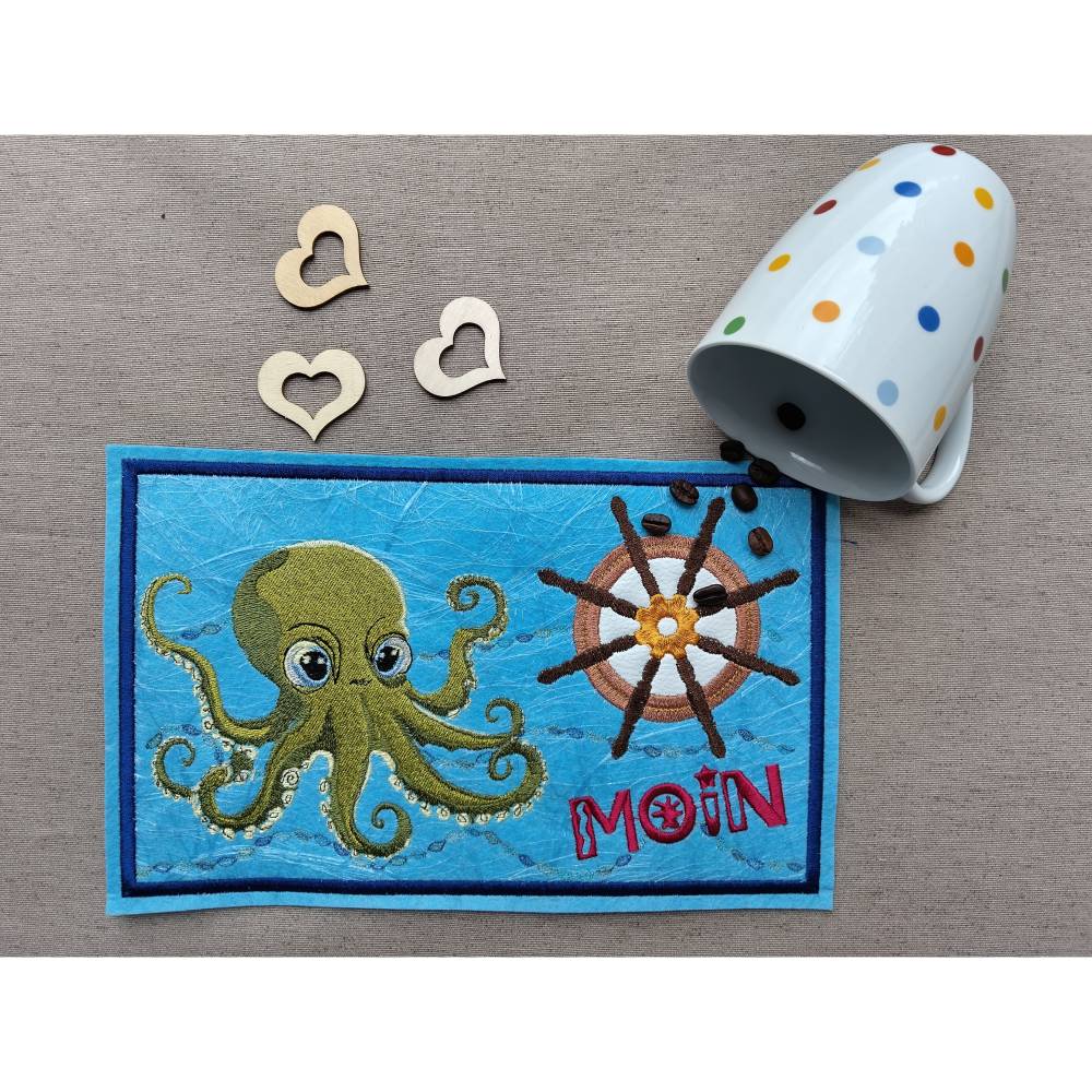 Die Designs eignen sich perfekt für ITH-Projekte, Applikationen und zur Kombination mit Sprüchen. Alle Motive sind speziell für den 10x10cm Rahmen erstellt. Die Mustergrößen und Stichzahlen:Tintenfisch (9,9 x 8,3 cm, 20.650 Stiche), Seepferdchen (9,9 x 4,7 cm, 5.050 Stiche), Anker (9,9 x 9,8 cm, 7.650 Stiche), Schriftzug Ahoi (8,3 x 3,9 cm, 2.100 Stiche), Windrose (9,8 x 9,8 cm, 8.500 Stiche), Steuerrad (9,9 x 9,8 cm, 10.200 Stiche), Seestern (9,9 x 9,8 cm, 9.200 Stiche), Muschel oneline (9,8 x 6,2 cm, 7.100 Stiche), Muschel Jakobsmuschel (9,9 x 9,0 cm, 7.950 Stiche) und Sonne (9,9 x 8,6 cm, 7.800 Stiche).