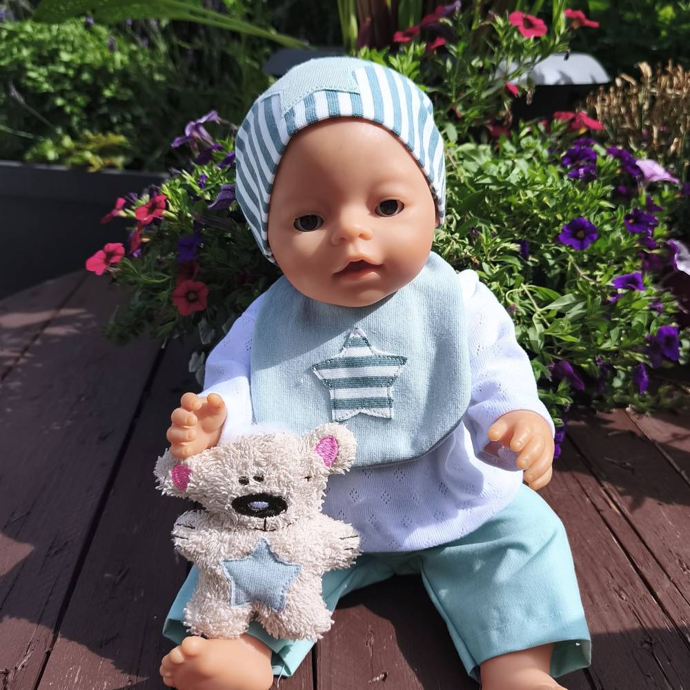 Du erhältst 6 hochwertige Stickdateien für Deine Stickmaschine: Sabberlatz (179x129mm, 1693 Stiche), Halstuch (146x129mm, 1473 Stiche), Mütze (179x129mm, 1316 Stiche), Mütze (176x115mm, 1013 Stiche), Schnullertuch (91x91mm, 1103 Stiche) und Teddy (115x105mm, 3107 Stiche). Perfekt für liebevoll gestaltete Puppenkleidung!