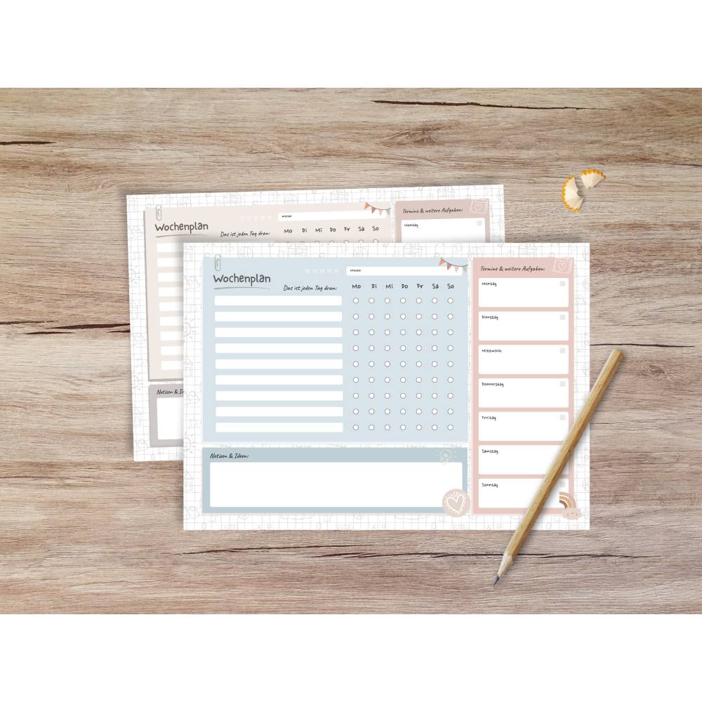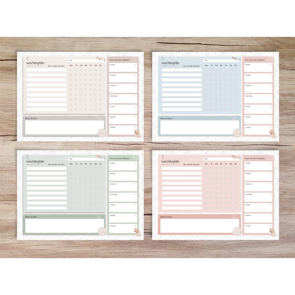 Dieser Wochenplan im Querformat bringt Ruhe und Überblick in euren Alltag, ob für Kinder, Familien oder für dich selbst. Mit klarer Wochenübersicht, Kästchen zum Abhaken und Platz für Termine und Notizen. Als PDF in vier liebevoll abgestimmten Farben sofort verfügbar zum Ausdrucken.