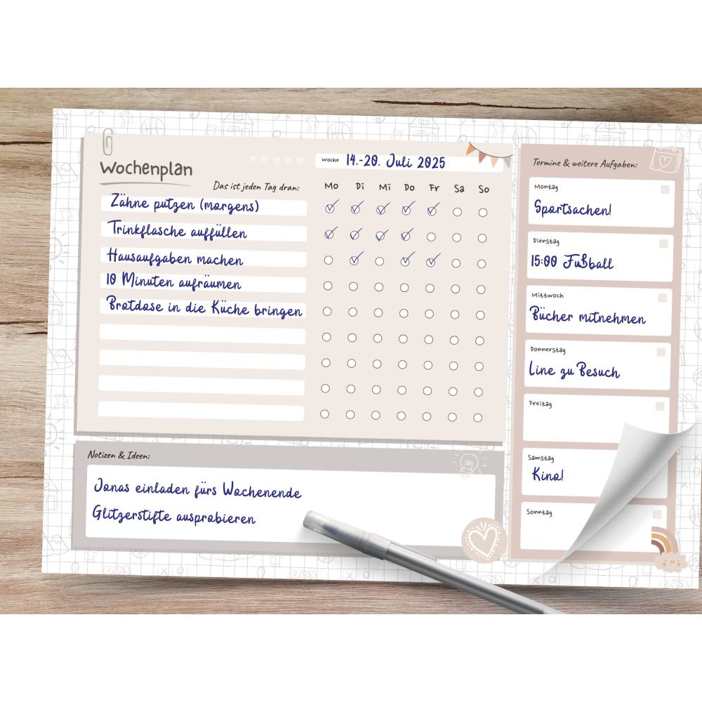 Ob dein Kind selbst abhaken möchte oder du deinen Alltag visuell sortierst, der Plan hilft dabei, Struktur zu schaffen und das Gedankenchaos zu entwirren. Perfekt für Schule, Alltag, Ferien oder Übergangsphasen.