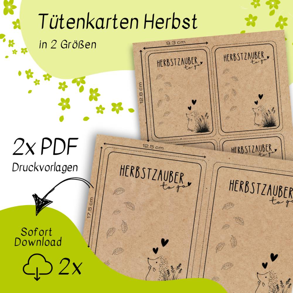 Geschenkkarte Tütenkarte mit Aufdruck „Herbstzauber to go” als Druckvorlage zum selber ausdrucken - einfach und schell umsetzbar - auch ohne Bastel-Gen ;)