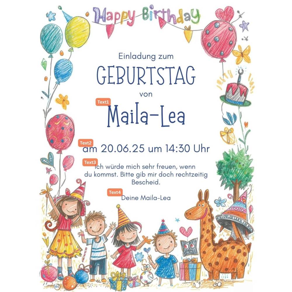 Technische Angaben: Format: A4, digitaler Download, personalisierbar, sofort herunterladen und drucken. Hole dir jetzt das perfekte Einladungskarten-Design für eine unvergessliche Kinderparty!