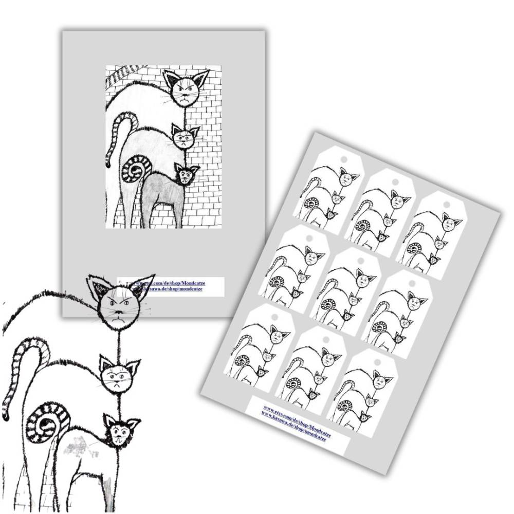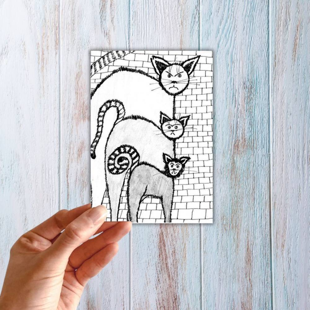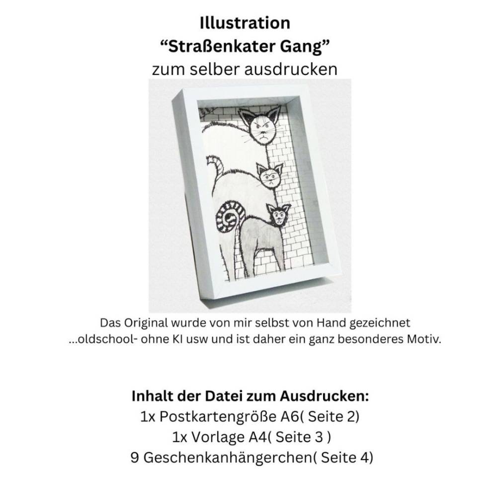 Postkarte, Poster, Illustration , Straßenkater Bande, handgemalt, PDF Download