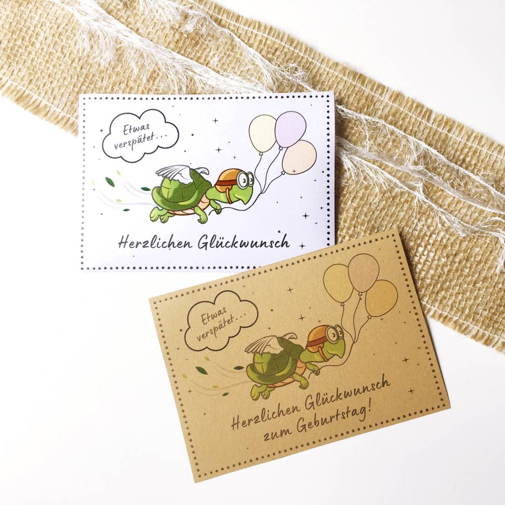 Du erstellst mit dieser PDF-Druckvorlage in wenigen Minuten eine witzige und persönliche Karte für nachträgliche Geburtstagsgrüße!