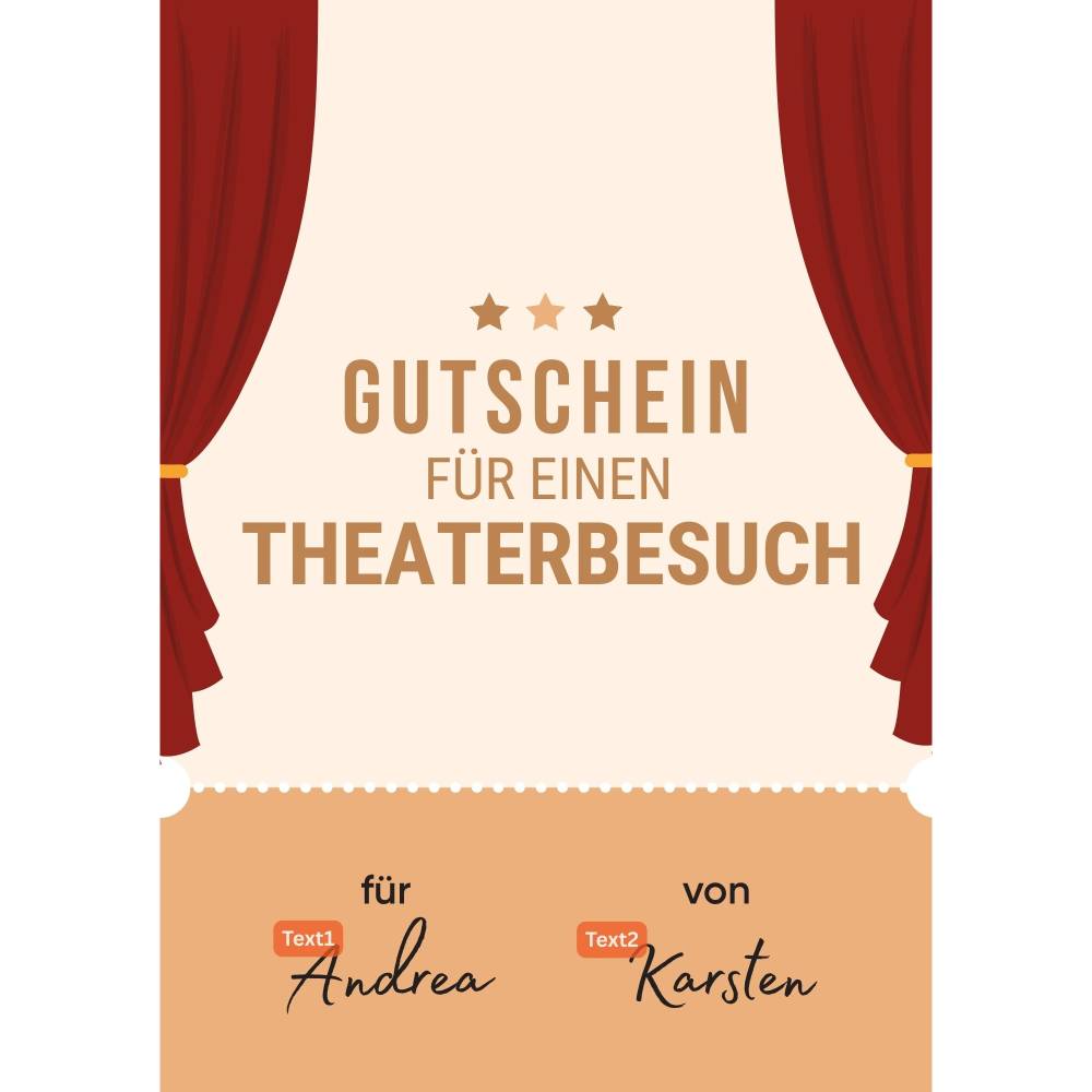 Ob Geburtstag, Weihnachten oder einfach als kleine Aufmerksamkeit – mit dem Gutschein für einen Theaterbesuch triffst du immer die richtige Wahl. Die DIN A4 Größe sorgt dafür, dass dein Gutschein professionell und hochwertig wirkt. Gestalte deinen Gutschein blitzschnell, drucke ihn zuhause aus und überrasche deine Liebsten mit einem besonderen Erlebnis.
