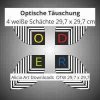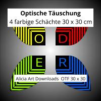 Es ist eine anspruchsvolle Optische Täuschung, nur wenige in meinem Umfeld erkennen sie. Die vier Schächte liegen einmal oben auf, aber wenn man sich die graue Fläche als Wand vorstellt, gehen sie nach hinten. Sie erhalten zwei Versionen, eine mit ganz dunkelgrauen Linien, die "besser lesbar" ist und eine mit schwarzen Linien. Das verschwommene Foto soll einfach nur eine Hilfestellung sein, wenn Sie sich schwer tun. Sie gehört nicht zum download dazu. Es sind also 2 die gleichen Wandbilder, 30,5 x 30,5 cm, dunkelgraue Linien bzw. schwarze Linien