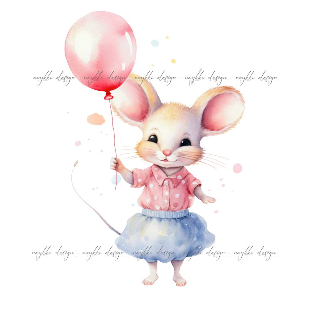 Dieses Bundle mit 6 liebevoll illustrierten Cliparts entführt dich in eine Welt voller Charme und Fantasie. Jedes der kleinen Mäuschen ist ein Unikat: mal trägt es bunte Luftballons, mal ein feines Kleidungsstück – immer aber strahlt es Persönlichkeit und Freundlichkeit aus. Die Illustrationen sind im zarten Aquarellstil gehalten, wodurch sie eine besonders warme und künstlerische Ausstrahlung bekommen.