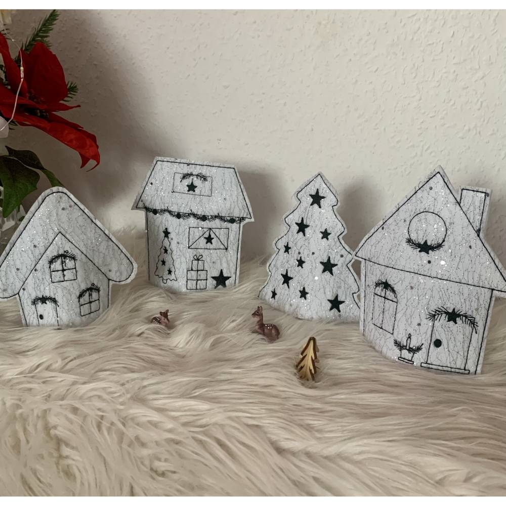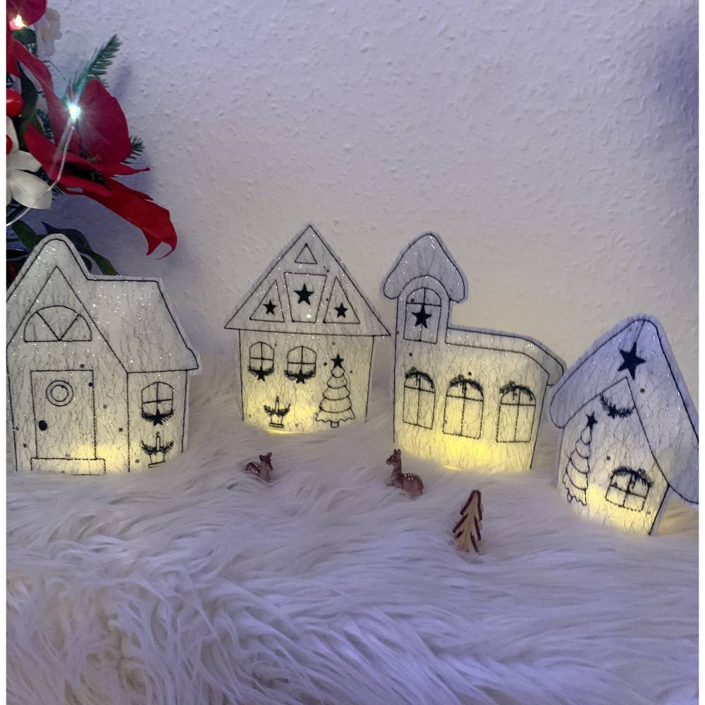 Gestalte dein festliches Winterdorf mit der einzigartigen Stickdatei Winterdorf Weihnachten Lichthaus Set 1 In the Hoop!