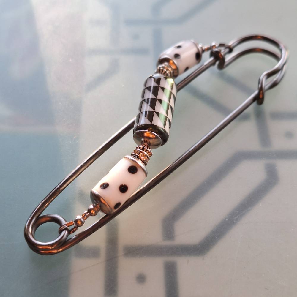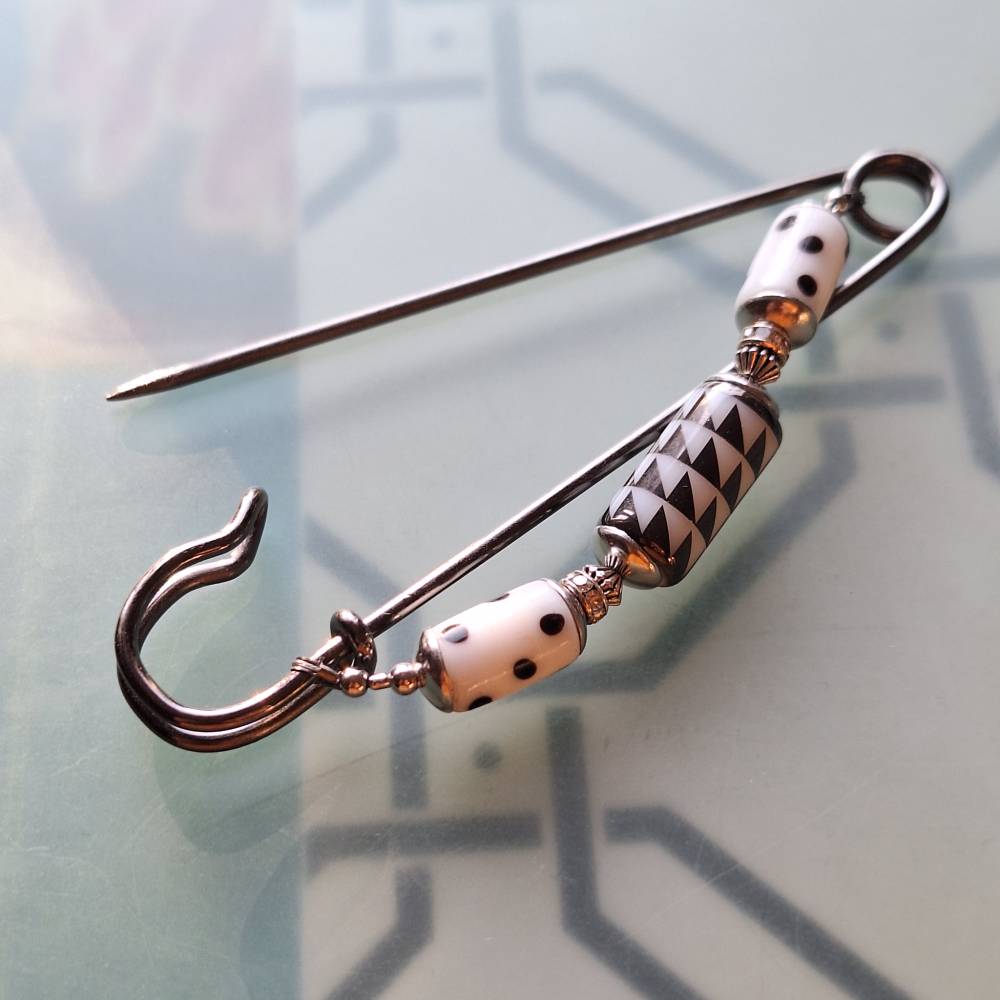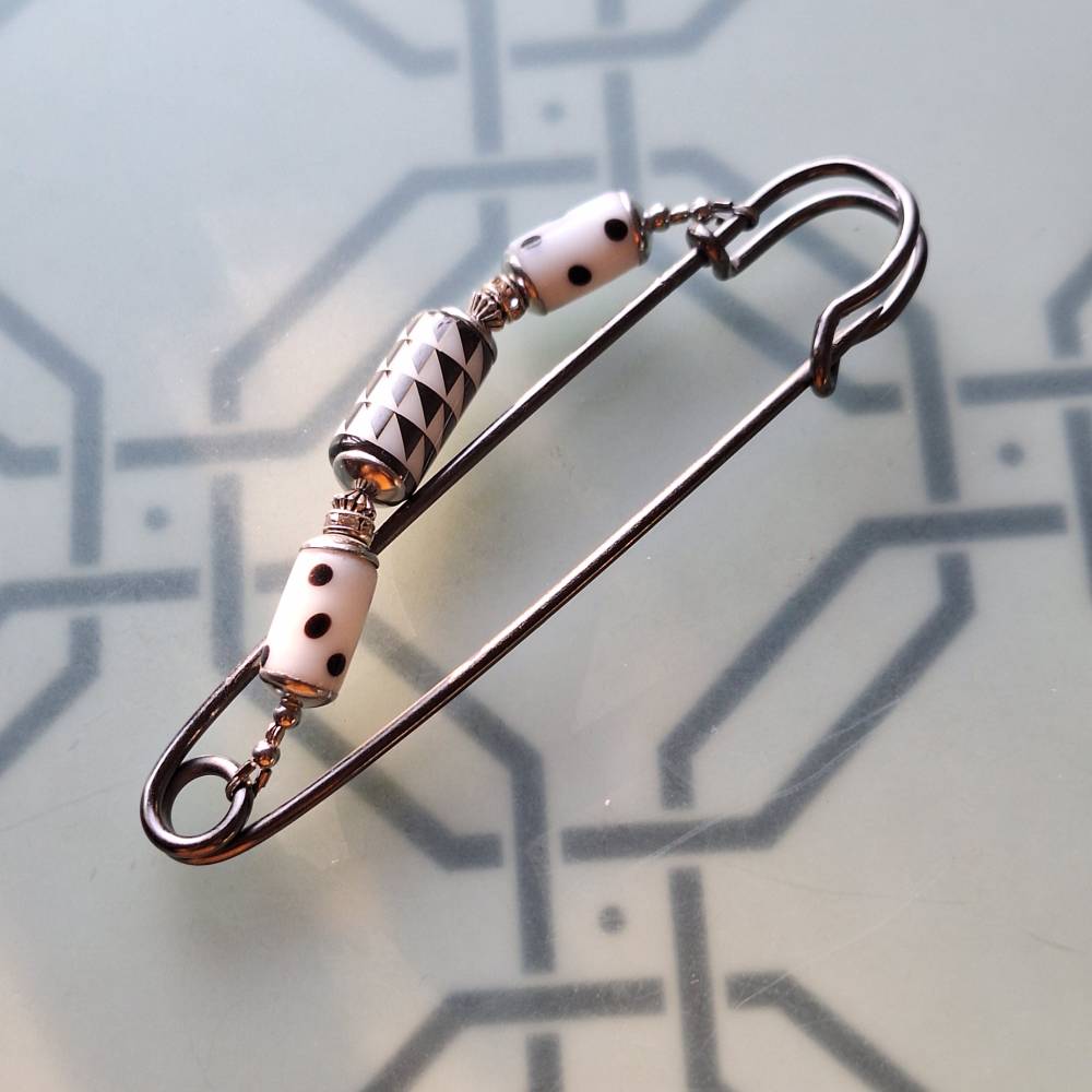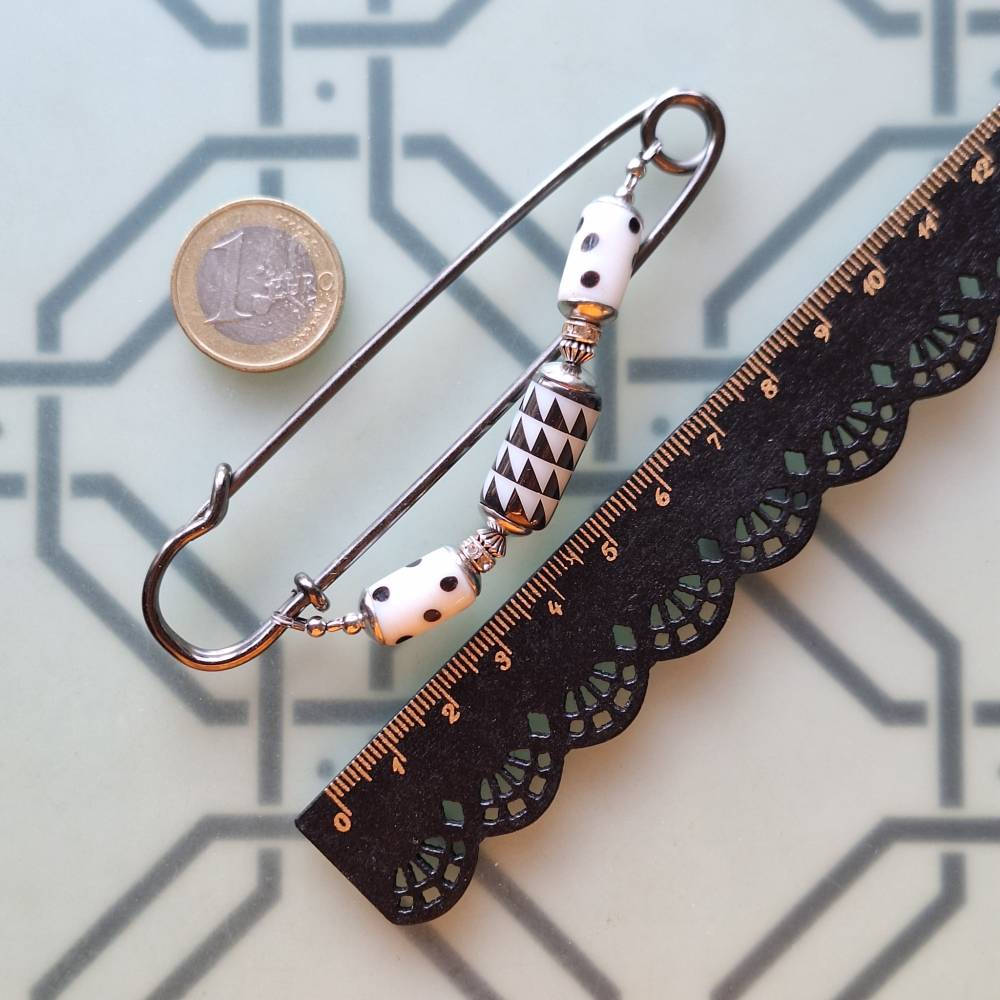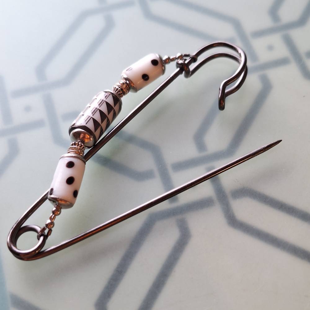 Schenke Deinen Strick- und Häkelwerken mit dieser extravaganten Schwarz Weiß Tuchnadel eine einzigartig elegante Note!