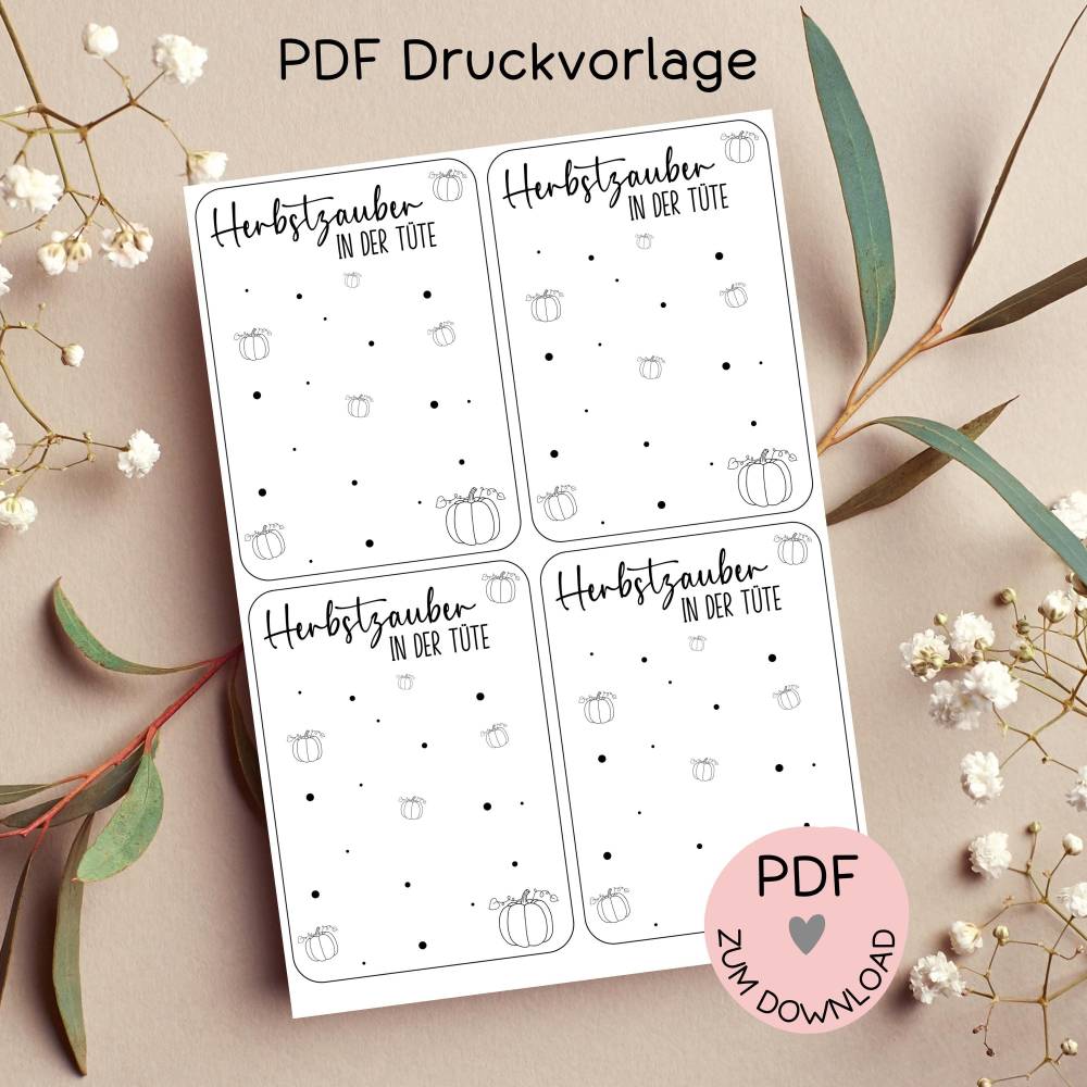 Karten "Herbstzauber", Digitale Datei, PDF-Druckvorlage, zum ausdrucken u. ausschneiden, z.B. f. kleine Geschenke