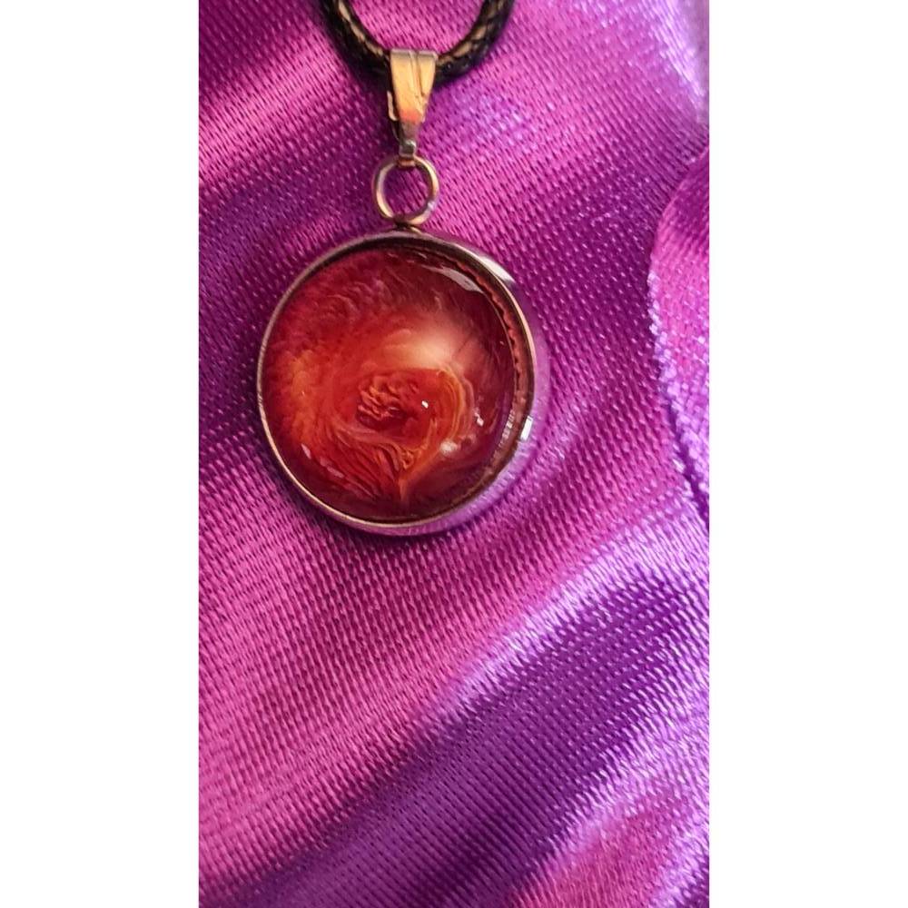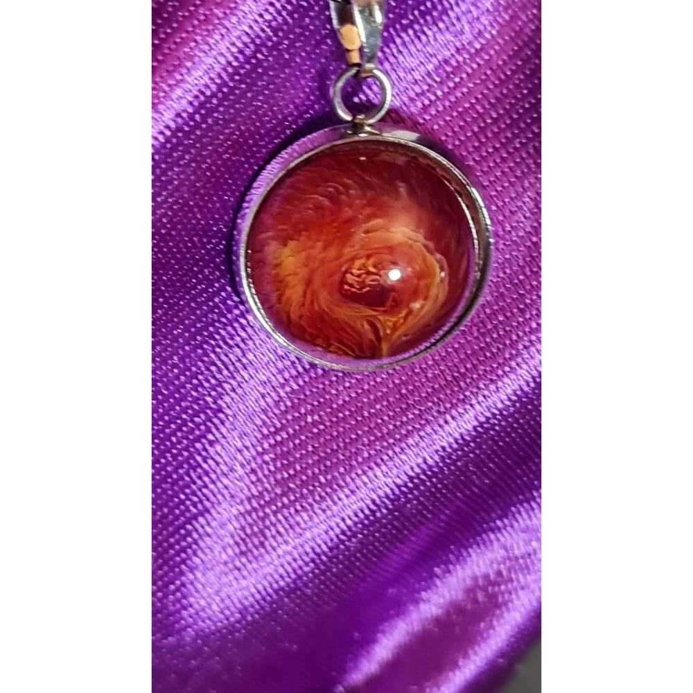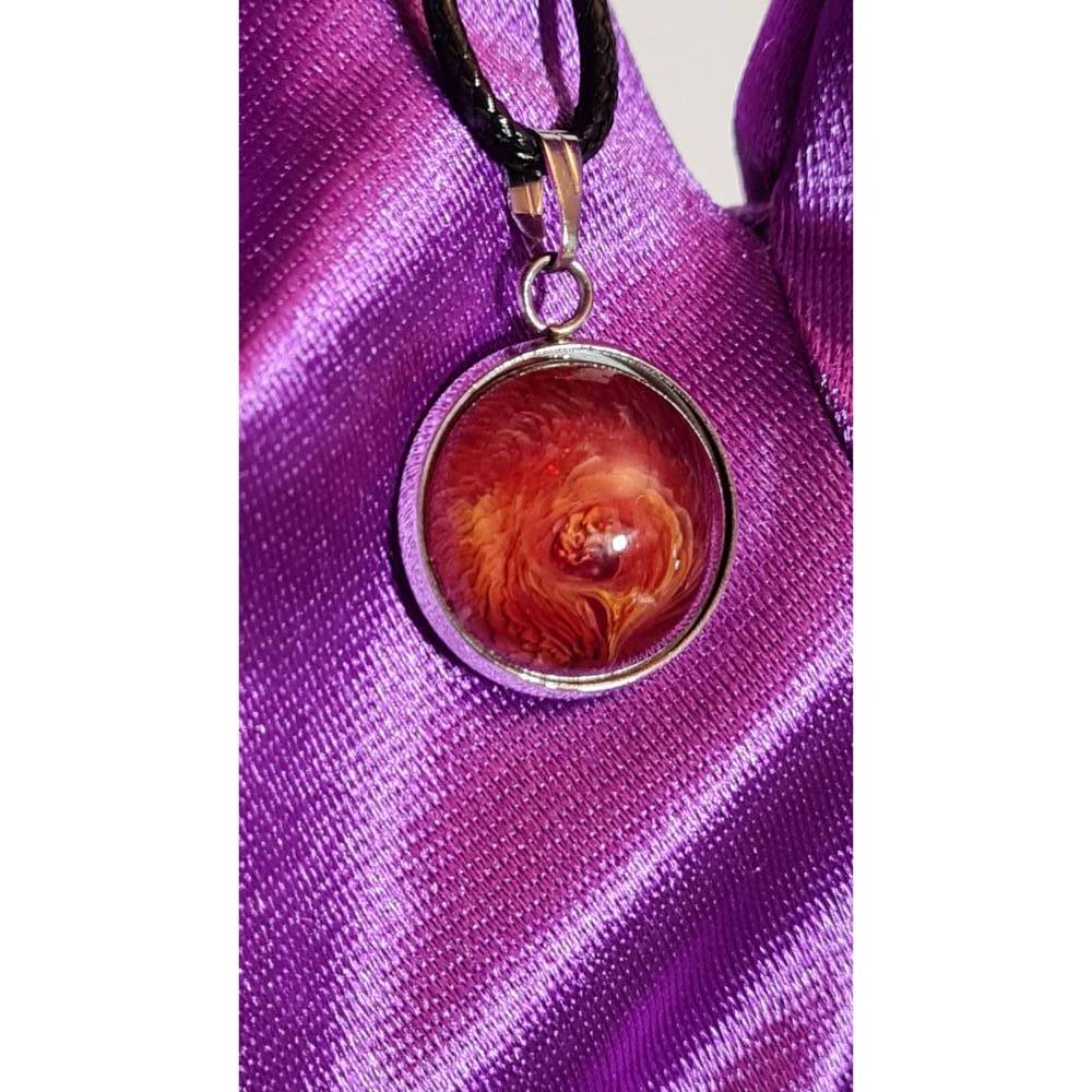 Handgefertigter Cabochon mit Alcohol Ink Effekt – Epoxidharz-Anhänger in Metallfassung an Baumwollkordel