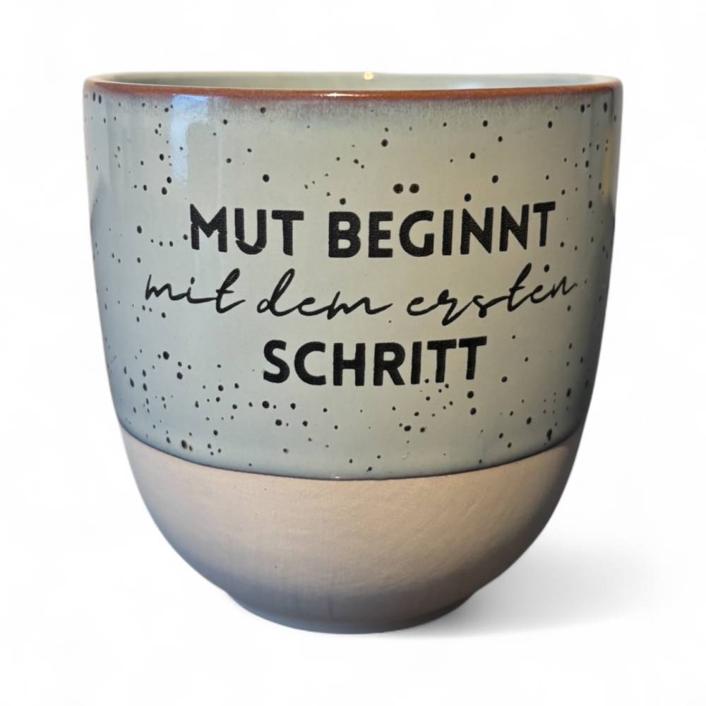Gefertigt aus hochwertiger, robuster Keramik überzeugen die Becher durch ihre matt glasierte Oberfläche mit zarten Sprenkeln. Die langlebige Gravur ist kratzfest und spülmaschinengeeignet – so bleibt dein Lieblingsspruch immer lesbar.
