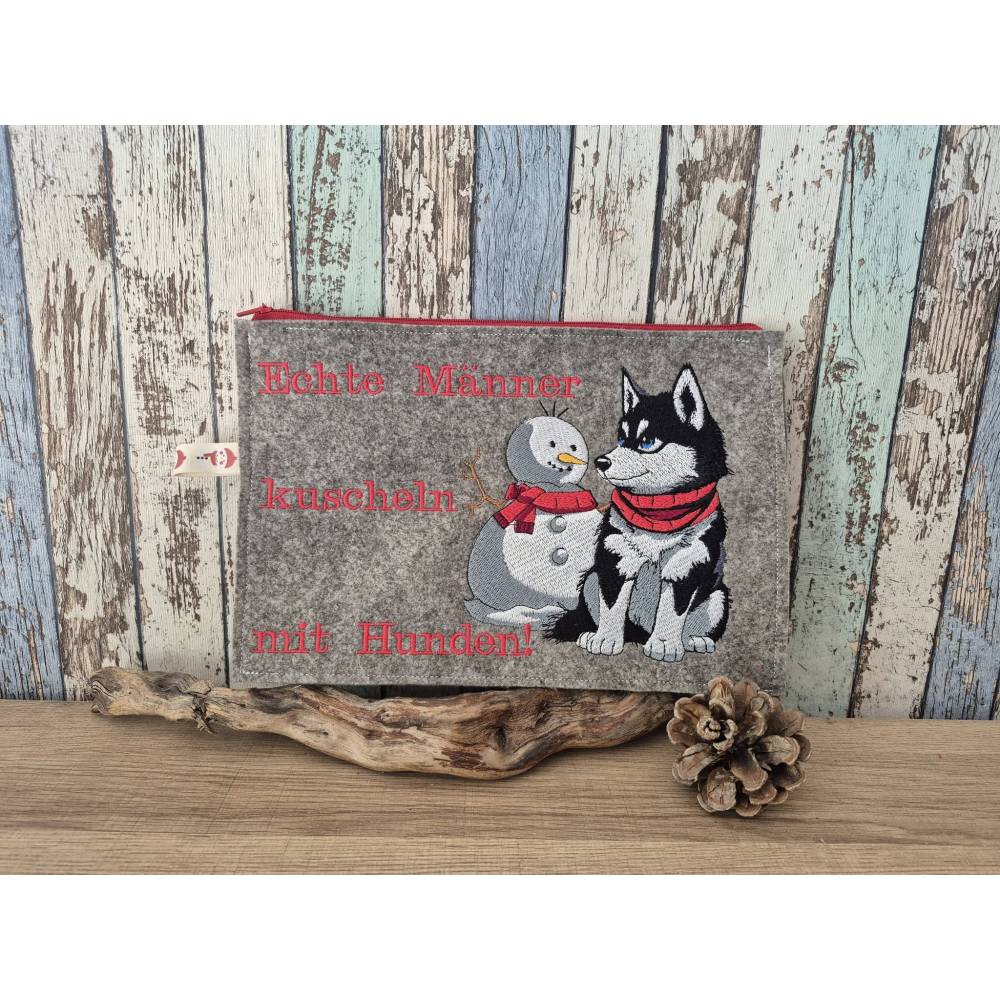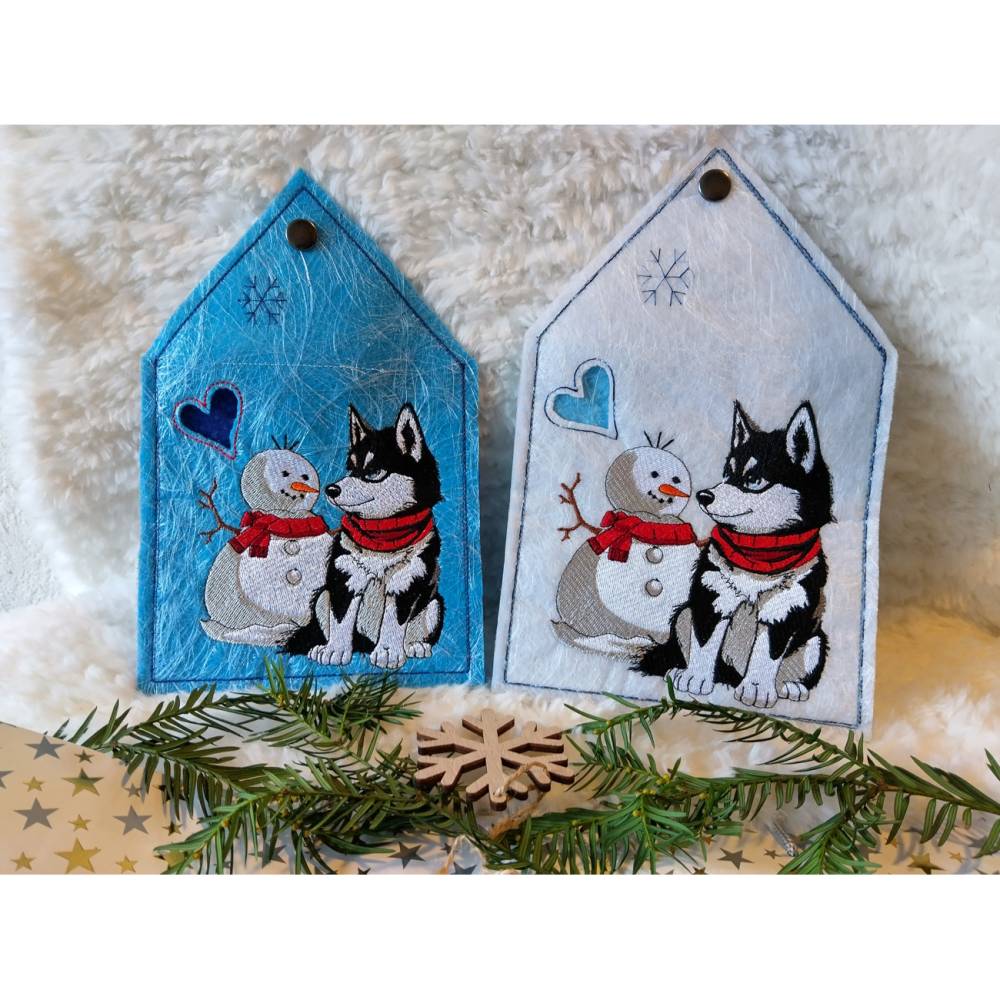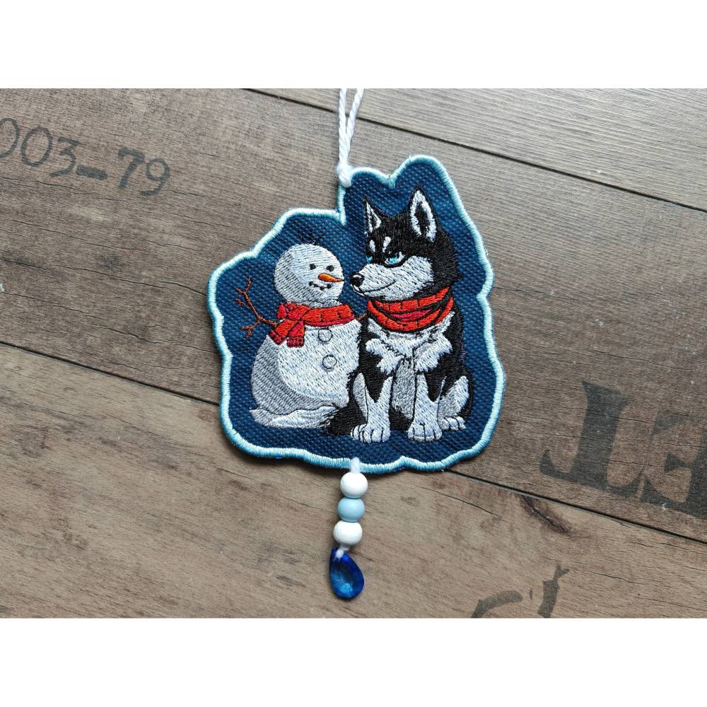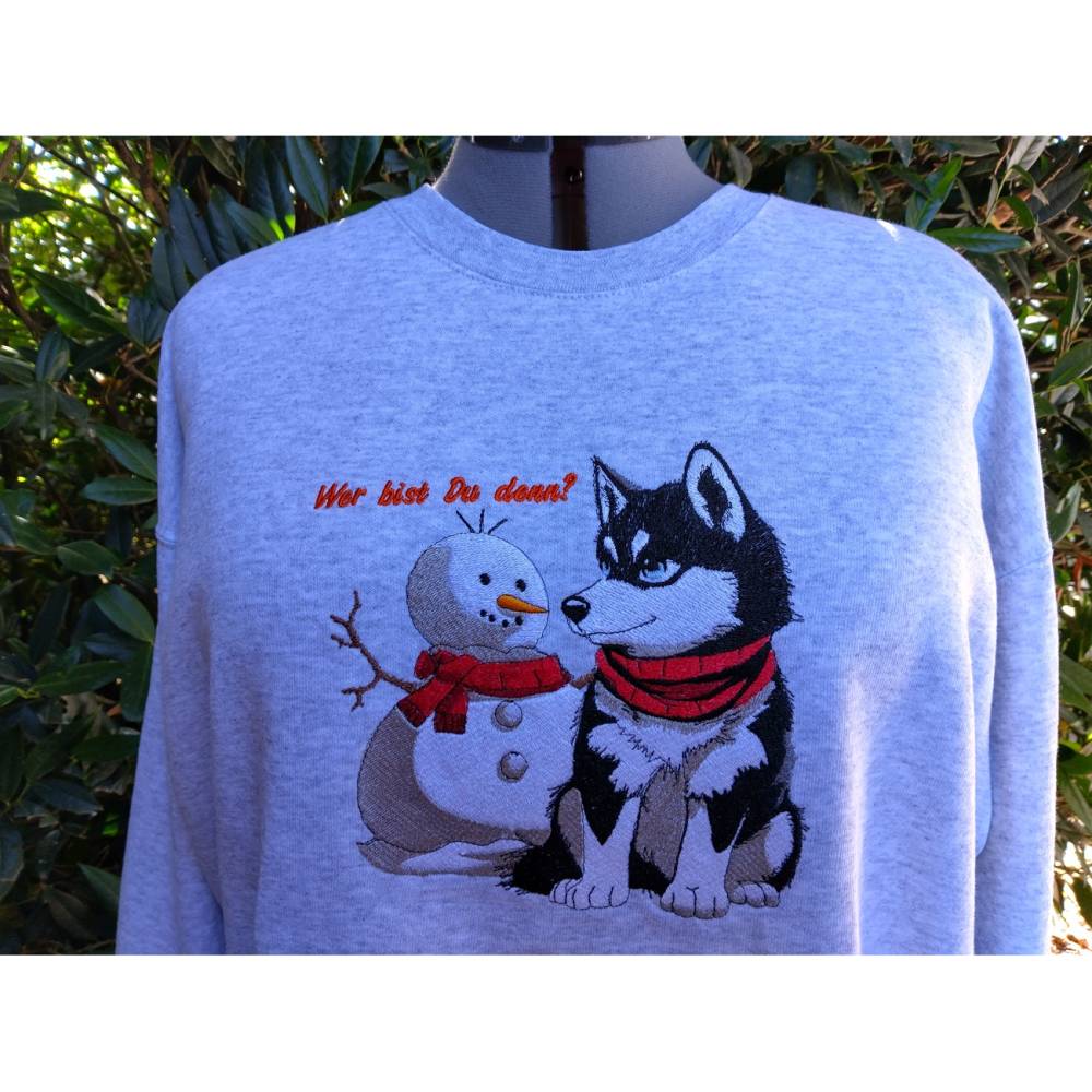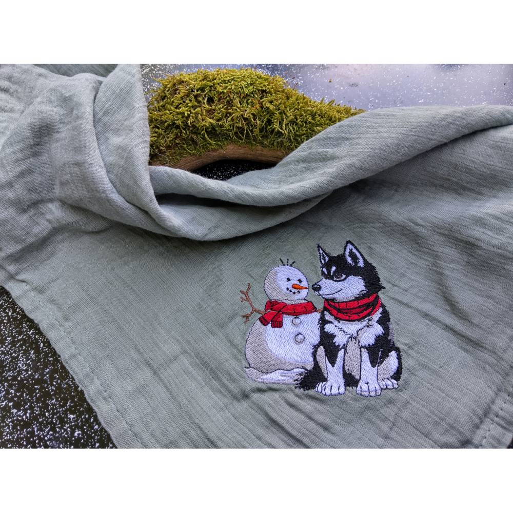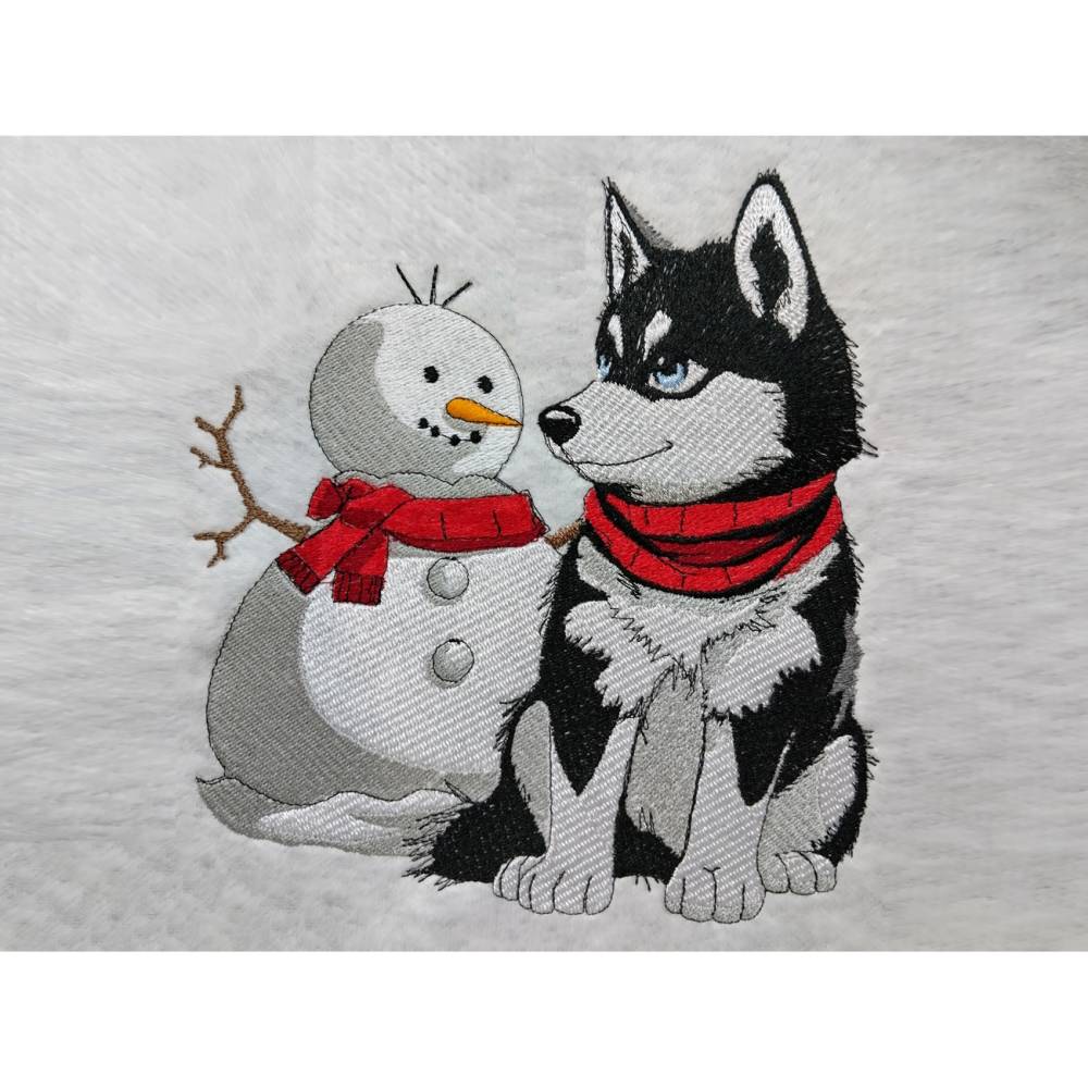 Husky mit Schneemann – Bringe winterliche Eleganz in Deine Stickprojekte! Dieses liebevoll gestaltete Motiv begeistert durch detailreiche Laufstichkonturen und eignet sich ideal, um Deine Herbst- und Winterkollektion zu verschönern. Die beiden süßen Schneefreunde lassen sich wunderbar mit coolen Sprüchen kombinieren und sorgen so für tierisch winterlichen Spaß – nicht nur zur Weihnachtszeit!