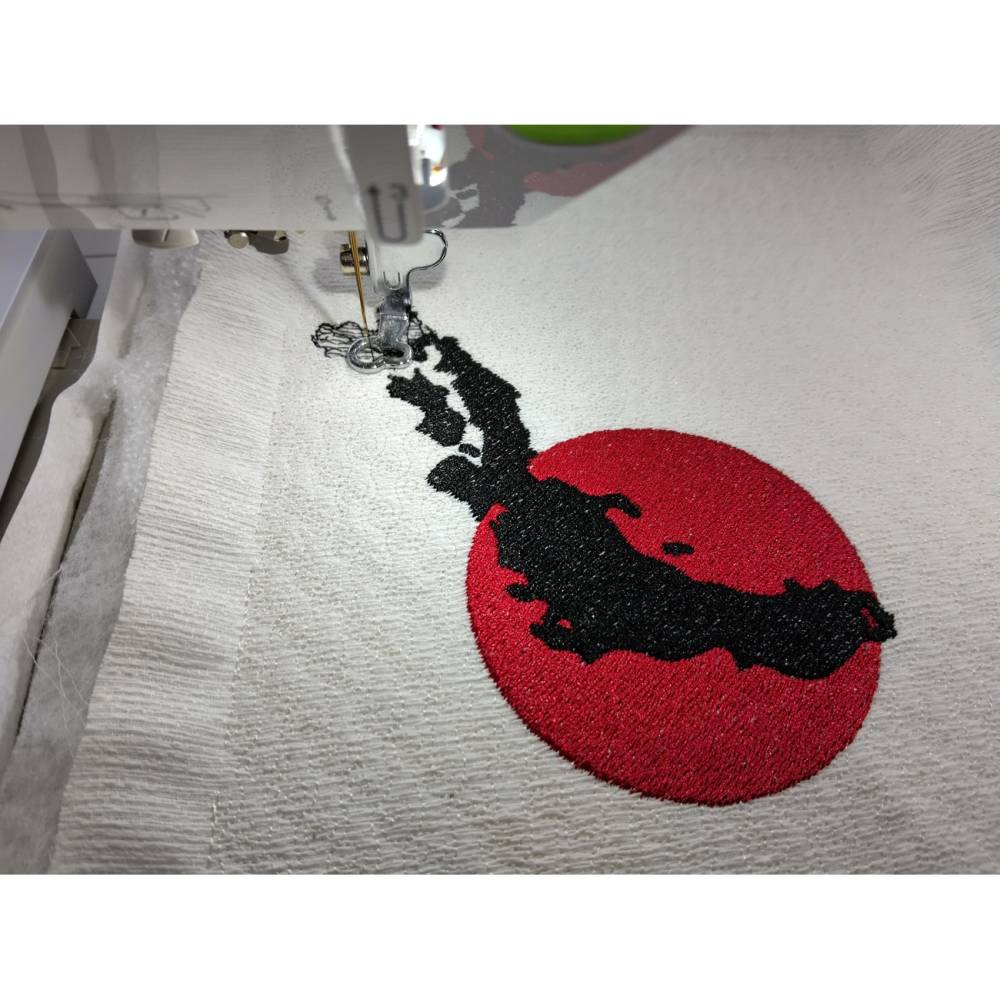 Mit dieser modernen Stickdatei bringst du die markanten Landesumrisse Japans im Hinomaru-Stil auf deine Stickprojekte. Der schwarze Füllstich betont das elegante Design, platziert auf dem klassischen roten Sonnenkreis – inspiriert von der japanischen Flagge. Das minimalistische und dennoch kraftvolle Motiv eignet sich ideal für dich, wenn du Japan liebst oder japanische Muster sticken möchtest.