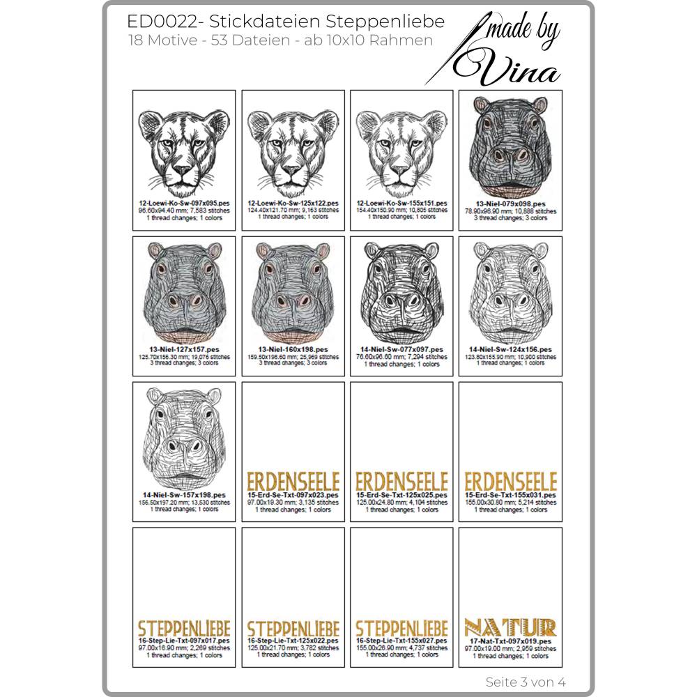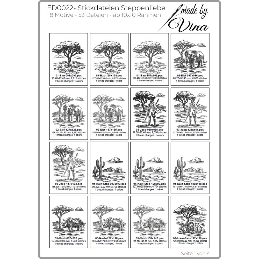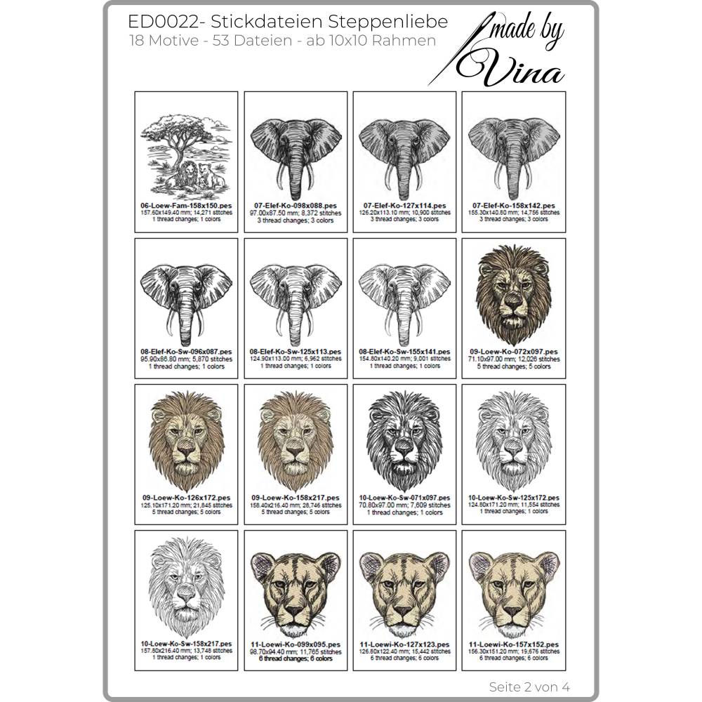 Dieses Stickdateien-Set wurde in liebevoller Zusammenarbeit mit Doro Schulenberg entwickelt und bietet dir exklusive, mit Herz gestaltete Motive. Starte jetzt dein Savannen-Projekt!