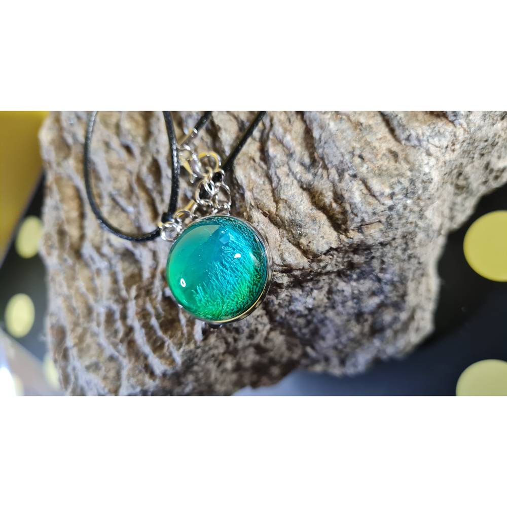 Das leuchtende Farbspiel in Grün- und Türkistönen erinnert an tanzende Meerespflanzen im Meer, es entsteht durch die faszinierende Petri-Art-Technik, bei der flüssige Farben im Harz zu lebendigen, organischen Mustern verschmelzen. Jedes Stück ist ein kleines Kunstwerk – kein Anhänger gleicht dem anderen.