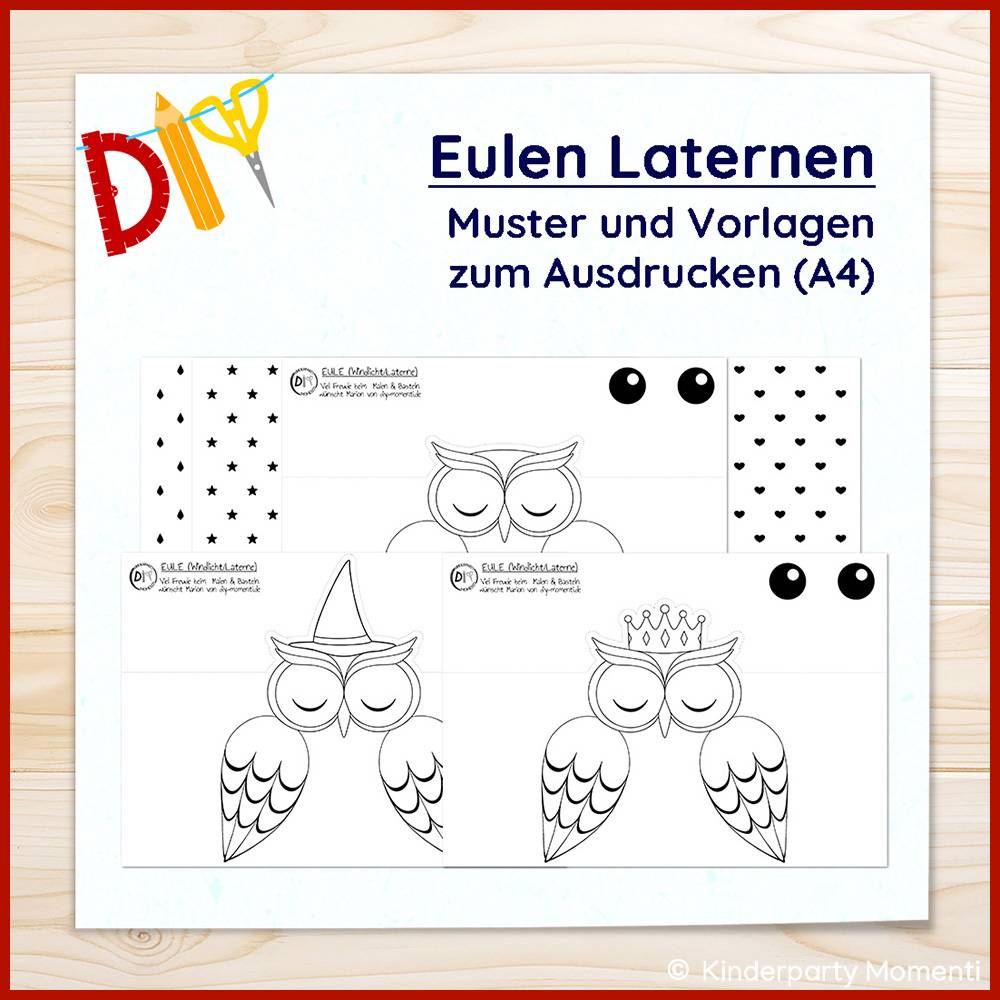 ► Mit den Vorlagen lassen sich ganz einfach einzigartige Eulenlaternen basteln und gleichzeitig hast du noch viel kreative Gestaltungsmöglichkeiten z.B. beim Zeichnen der Eulen Augen