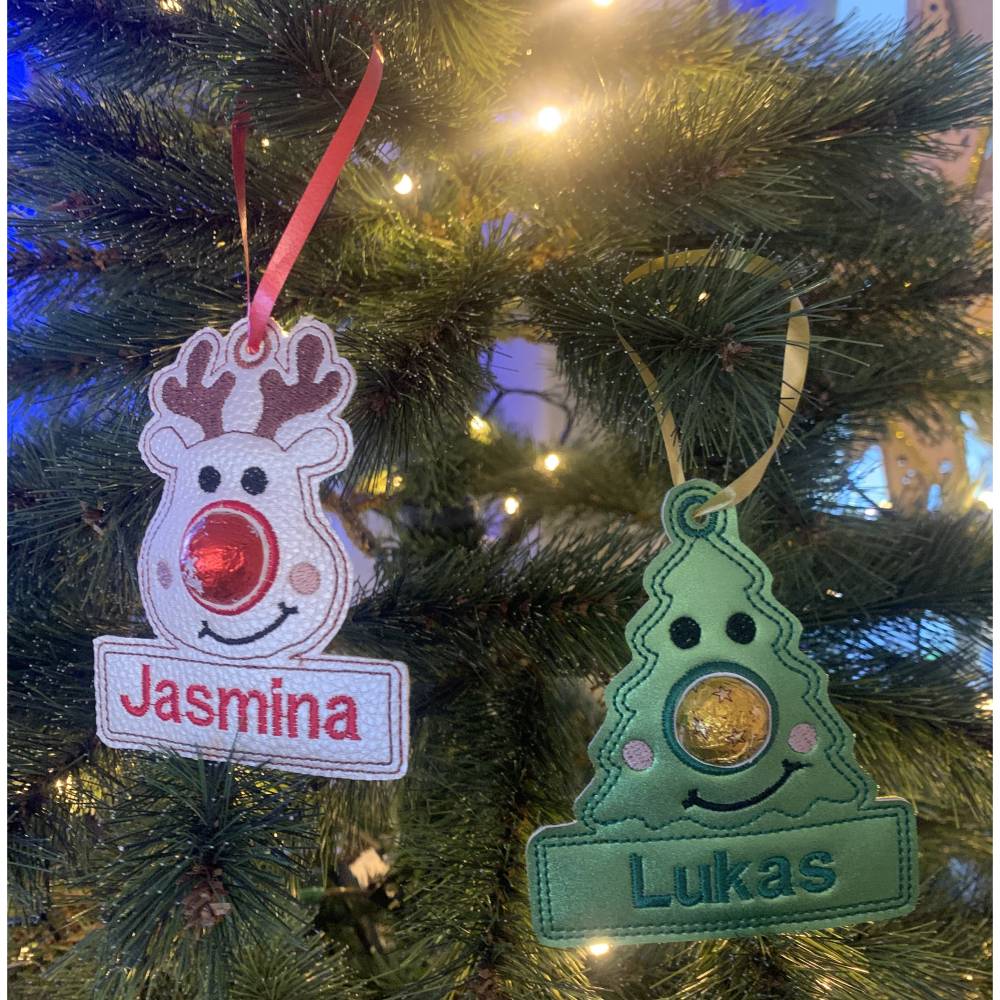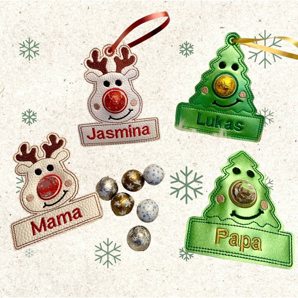 Stickdatei Weihnachten Schoko Nase Name Rentier & Tanne 13x18 Set 905 mit Anleitung