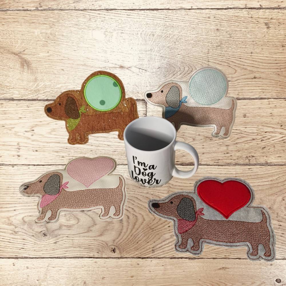 Entdecke die vielseitige Stickdatei Mug Rug Hund Dackel In the Hoop und bringe deine Stickprojekte auf das nächste Level! Mit diesem liebevoll gestalteten Set von Design-by-Jasmina erhältst du