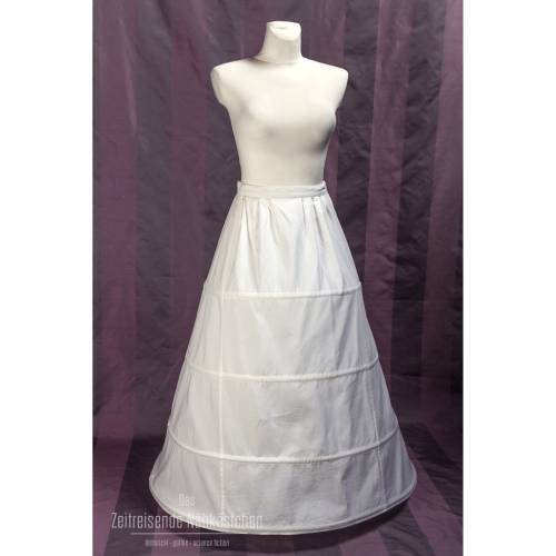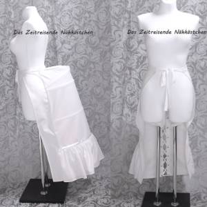 Dieser viktorianische Unterrock ist das perfekte Basisstück für Tournürenkleider des 19. Jahrhunderts und verleiht dem Überrock Volumen, Schwung und eine gleichmäßige Silhouette. Er ist speziell darauf ausgelegt, das Durchdrücken von Metallstäben zu reduzieren und sorgt dank der breiten Rüschenreihe am Saum für schönes Volumen für Dein Gründerzeit Kostüm. Geeignet für Hummerschwanz-Unterbauten oder andere Reifrockvarianten, die eine stabile, formgebende Unterschicht benötigen. Jeder Unterrock wird individuell für Dich angepasst gefertigt.