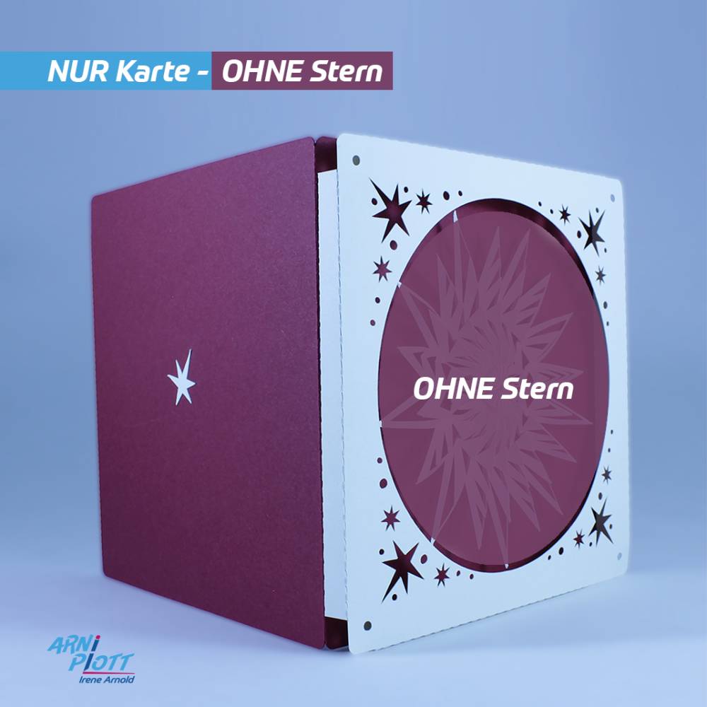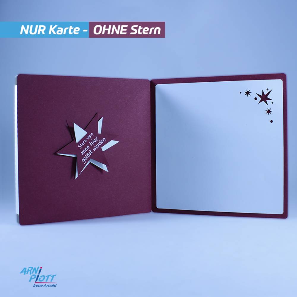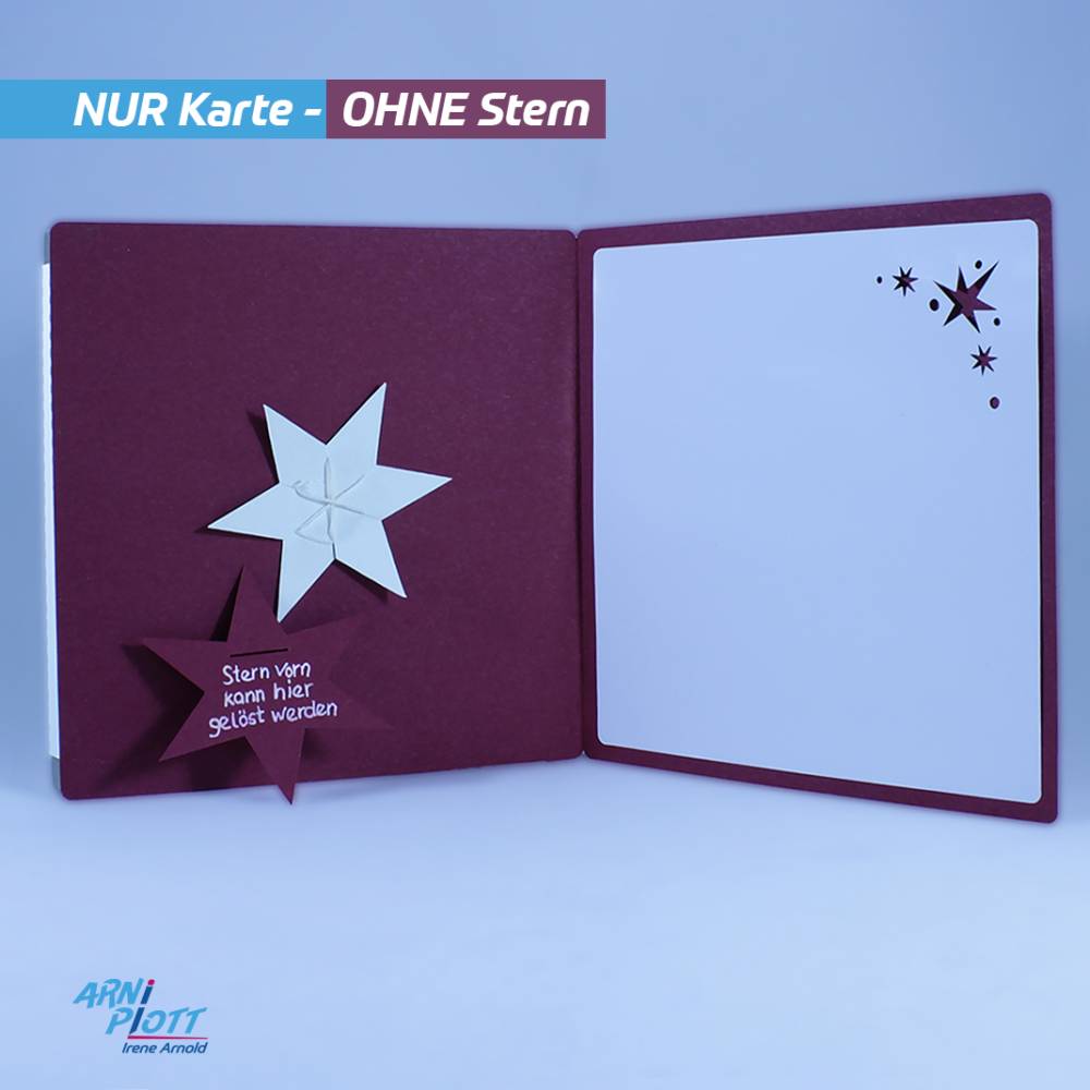 Wenn Du bereits den Zauber meiner Weihnachtssterne K1 und K2 in den Plotterdateien entdeckt hast und diese verschenken möchtest, ist diese „Kartenverpackung“ genau richtig. In diese Karte kannst Du einen meiner Sterne ganz einfach integrieren, so dass er vom Empfänger problemlos entnommen werden kann. Oder er stellt die komplette Karte als außergewöhnliche Weihnachtsdeko auf. Platz für einen lieben Weihnachtsgruß findest Du in der Karte ebenfalls.