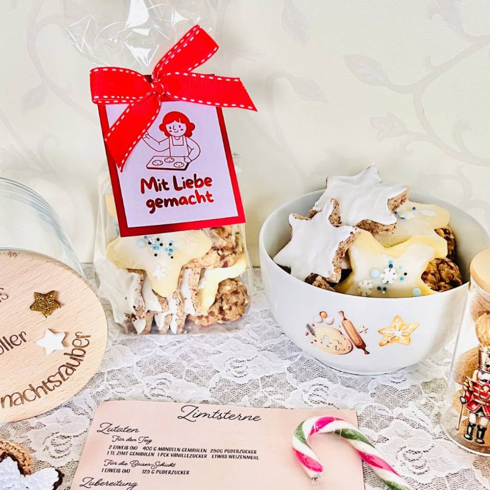 Zusätzlich enthält dasPrintable zwei hübsche Geschenkanhänger-Vorlagen für selbstgebackeneLeckereien und ein leeres DIN-A4-Rezeptblatt, das du handschriftlich mitdeinen eigenen Backrezepten füllen und abheften kannst – ideal für deinen ganzpersönlichen Rezeptordner.