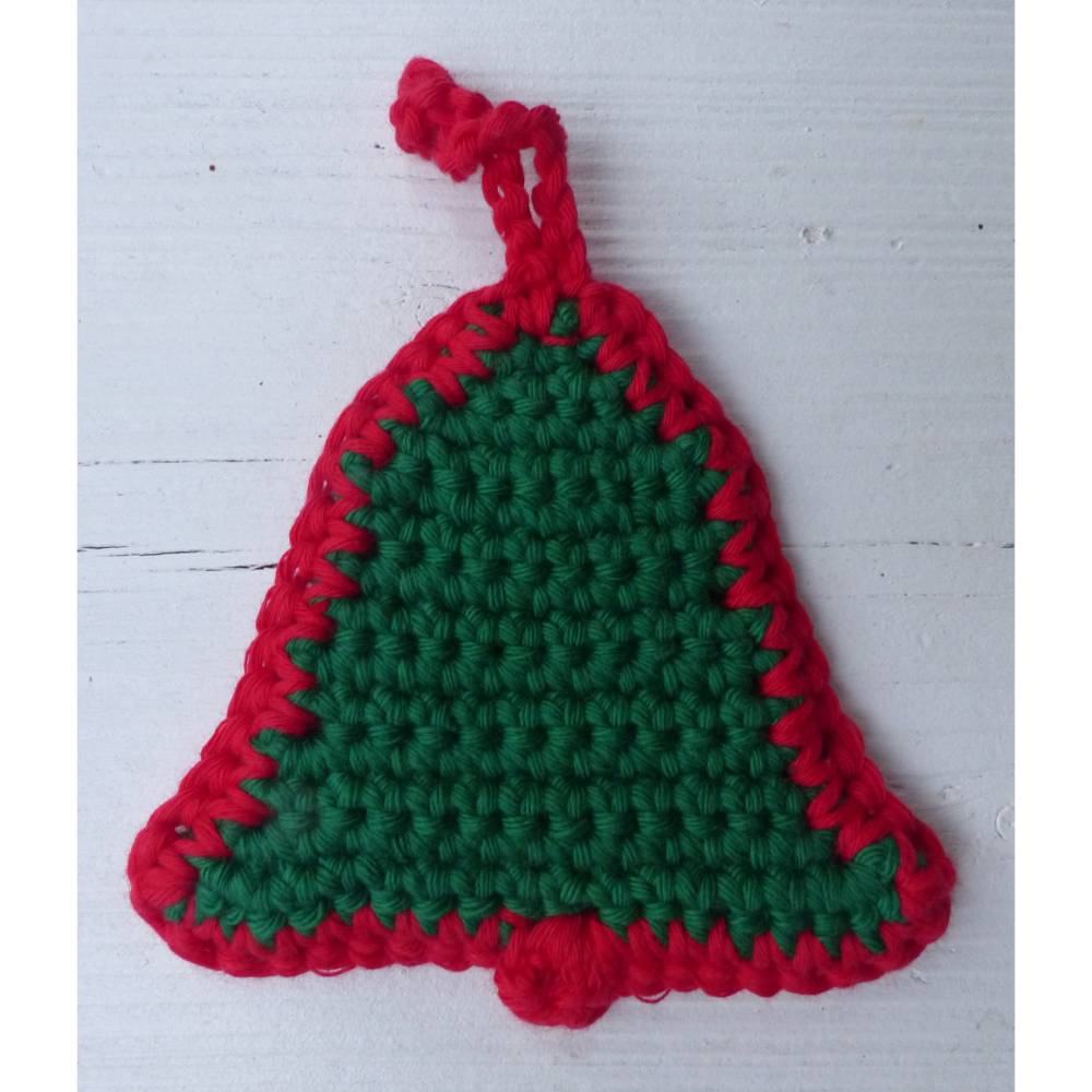 Geeignet sind Reste von Baumwollgarn. Mit Nadelgröße 3,5 bei einer Lauflänge von 85 m / 50 g (Schulgarn, Topflappengarn 100 % Baumwolle) wurde meine Glocke unten 10 cm breit und 8,5 cm hoch (ohne Aufhänger und Glockenschlegel)