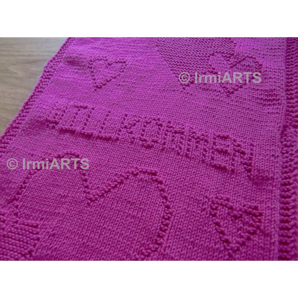 Dieses Gästehandtuch ist auch für Anfänger geeignet, es besteht nur ausrechten und linken Maschen. In der Strickschrift ist jede Reihe einzelnbeschrieben (Beispiel: Reihe 1: 1 rM, 5 lM, Reihe 2: 3 lM,3 rM …).
